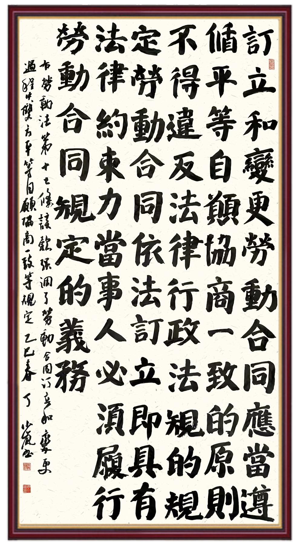 法律,是勞動(dòng)者披荊斬棘的鎧甲;書法,是法治精神薪火相傳的載體。
