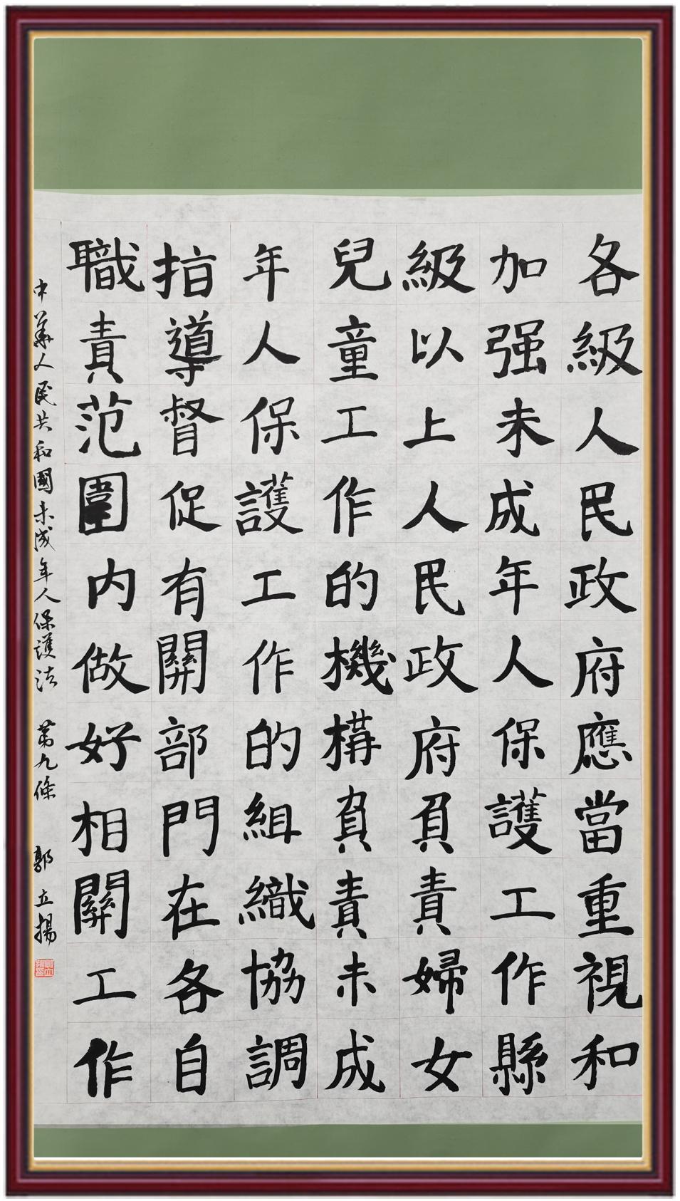 “六一”國際兒童節(jié)來臨之際,“書·法”活動邀請小朋友們書寫《中華人民共和國未成年人保護法》。一筆一畫寫未來,一字一句守純真!