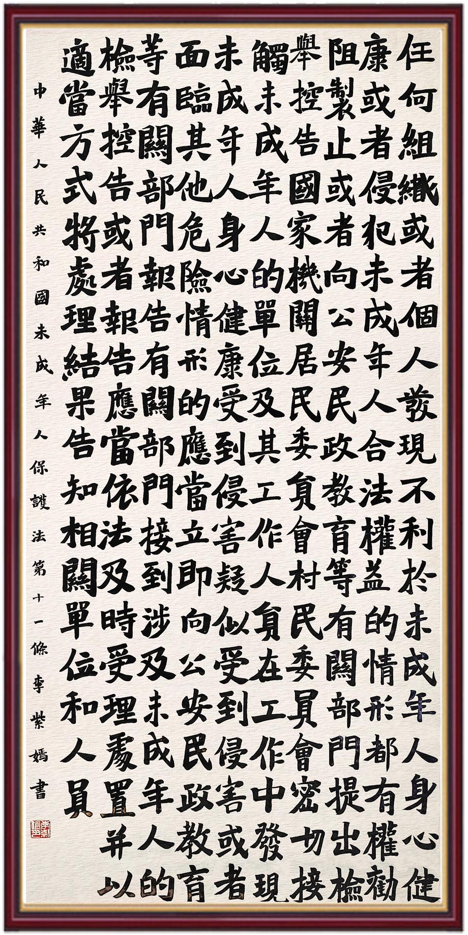 “六一”國際兒童節(jié)來臨之際,“書·法”活動邀請小朋友們書寫《中華人民共和國未成年人保護法》。一筆一畫寫未來,一字一句守純真!