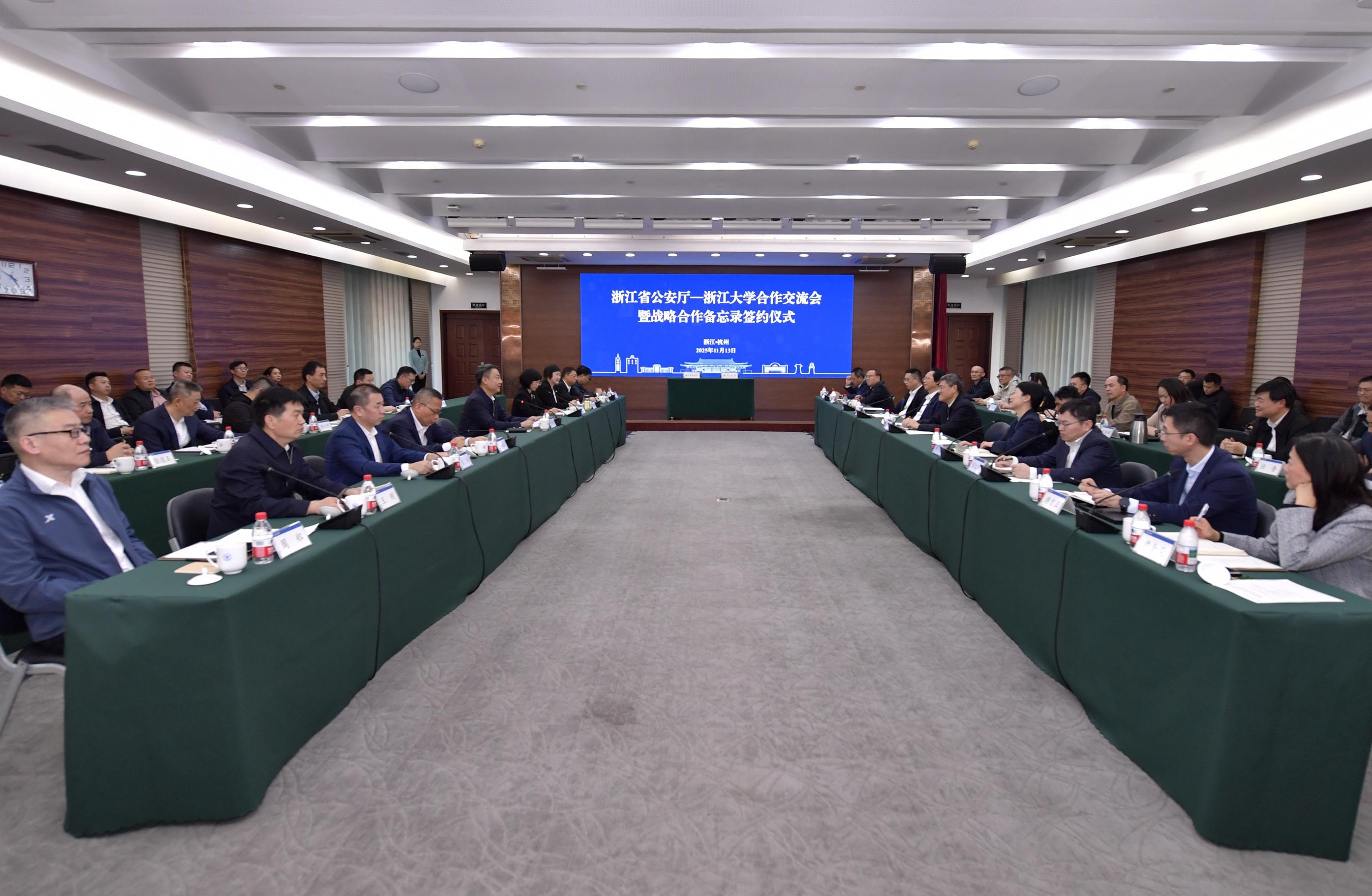 11月13日,浙江省公安廳—浙江大學合作交流會暨合作備忘錄簽約儀式在浙江大學舉行。浙江省副省長、省公安廳廳長楊青玖,浙江大學黨委書記任少波出席并講話。