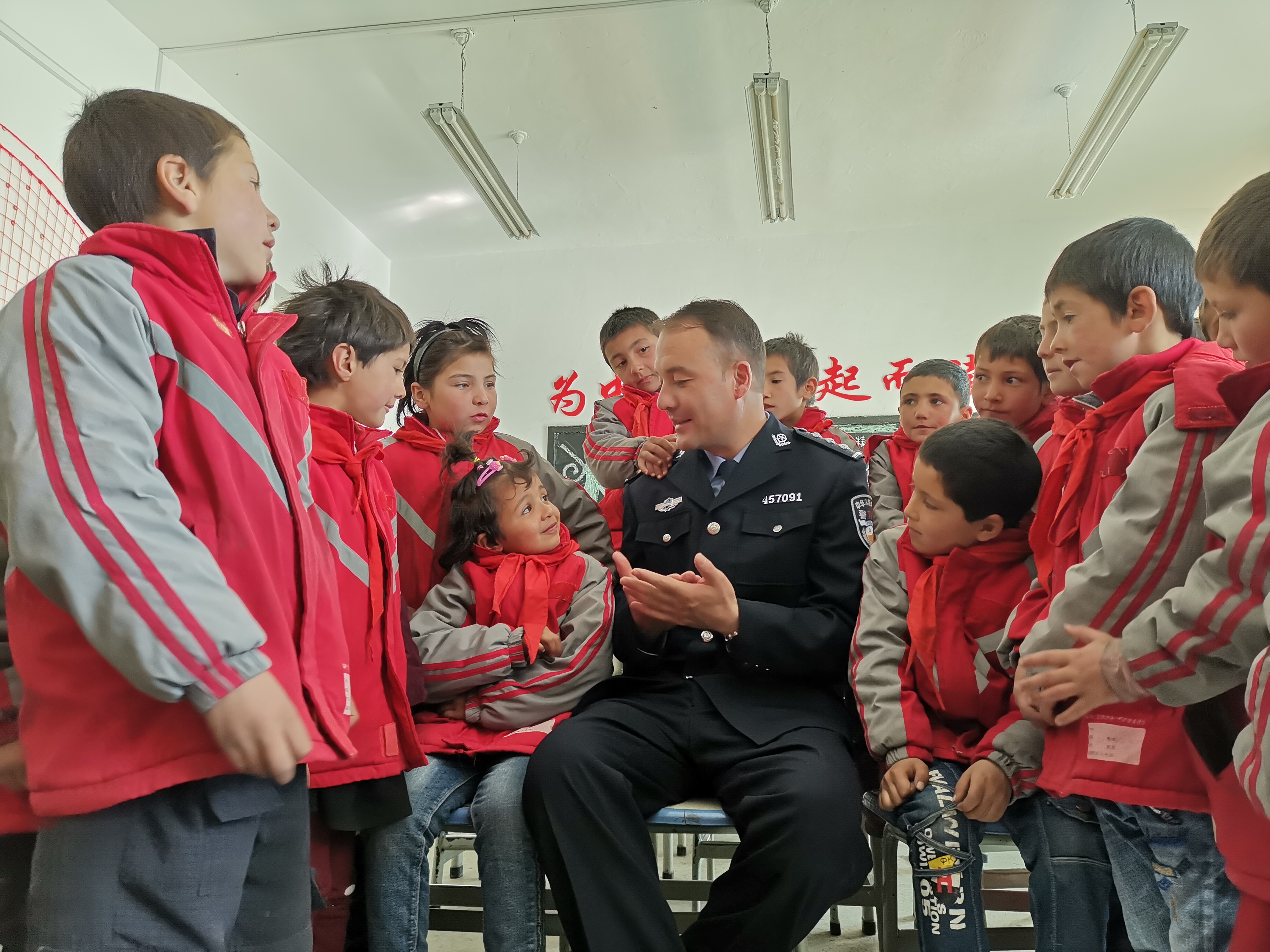 4月9日,在帕米爾高原上,新疆喀什邊境管理支隊達布達爾邊境派出所民警走進達布達爾鄉(xiāng)小學,開展了以“國家安全,你我同行”為主題的全民國家安全教育日普法宣傳活動。期間,民警以主題宣講、共同討論等形式,為學生講解了國家安全相關(guān)法律法規(guī),提高了孩子們的國家安全意識。 法制網(wǎng)記者 潘從武 法制網(wǎng)通訊員 李康強 王九峰 攝