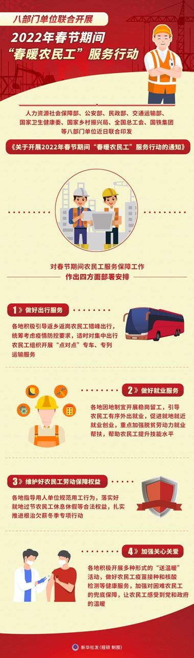 圖表:八部門單位聯(lián)合開展2022年春節(jié)期間“春暖農(nóng)民工”服務行動