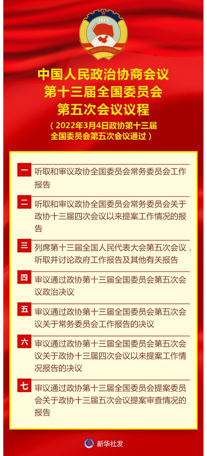 圖表:中國(guó)人民政治協(xié)商會(huì)議第十三屆全國(guó)委員會(huì)第五次會(huì)議議程
