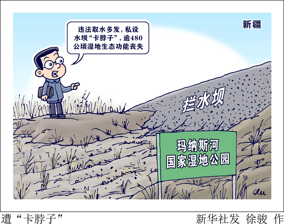 瑪納斯河是天山北坡最主要的河流之一。近日,“新華視點”記者跟隨中央第五生態(tài)環(huán)境保護督察組在新疆發(fā)現(xiàn),瑪納斯河國家濕地公園、瑪納斯河流域中上游濕地省級自然保護區(qū)部分重要濕地生態(tài)功能退化,483.9公頃濕地生態(tài)功能基本喪失,部分區(qū)域甚至嚴(yán)重干涸,失去基本輸水功能,附近難見水生植物。