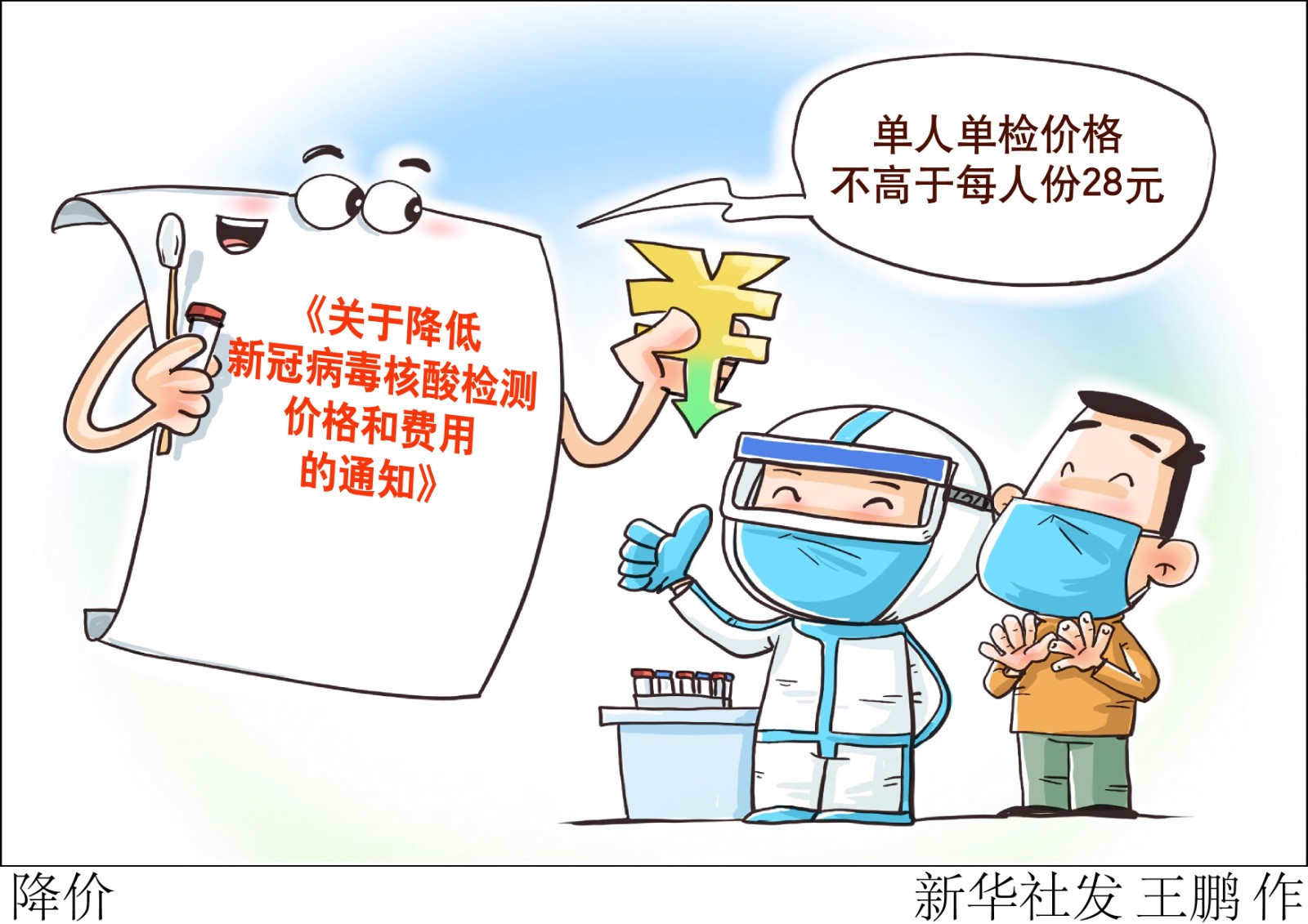 為適應(yīng)新冠病毒肺炎疫情防控的形勢變化,降低大規(guī)模核酸篩查和高頻率檢測的成本,國家醫(yī)療保障局辦公室、國務(wù)院應(yīng)對(duì)新型冠狀病毒肺炎疫情聯(lián)防聯(lián)控機(jī)制醫(yī)療救治組4月2日聯(lián)合印發(fā)《關(guān)于降低新冠病毒核酸檢測價(jià)格和費(fèi)用的通知》,明確單人單檢降至不高于每人份28元、多人混檢統(tǒng)一降至每人份不高于8元。