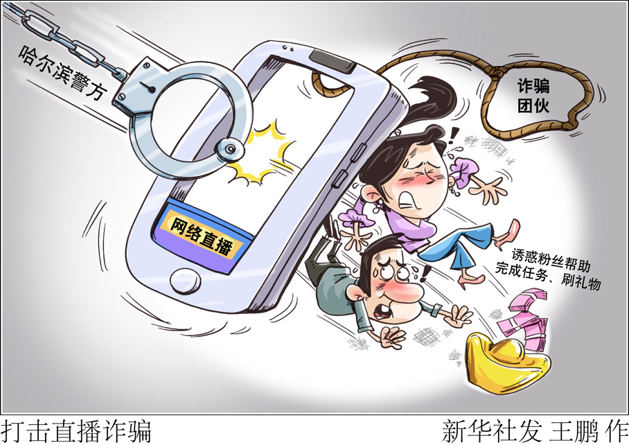 一網(wǎng)絡(luò)直播詐騙團(tuán)伙以傳媒公司為掩護(hù),招募大量女主播和男運(yùn)營,誘惑粉絲幫助完成任務(wù)、刷禮物,從而實(shí)施詐騙。近日,哈爾濱警方一舉摧毀這個(gè)由38人組成的詐騙團(tuán)伙。