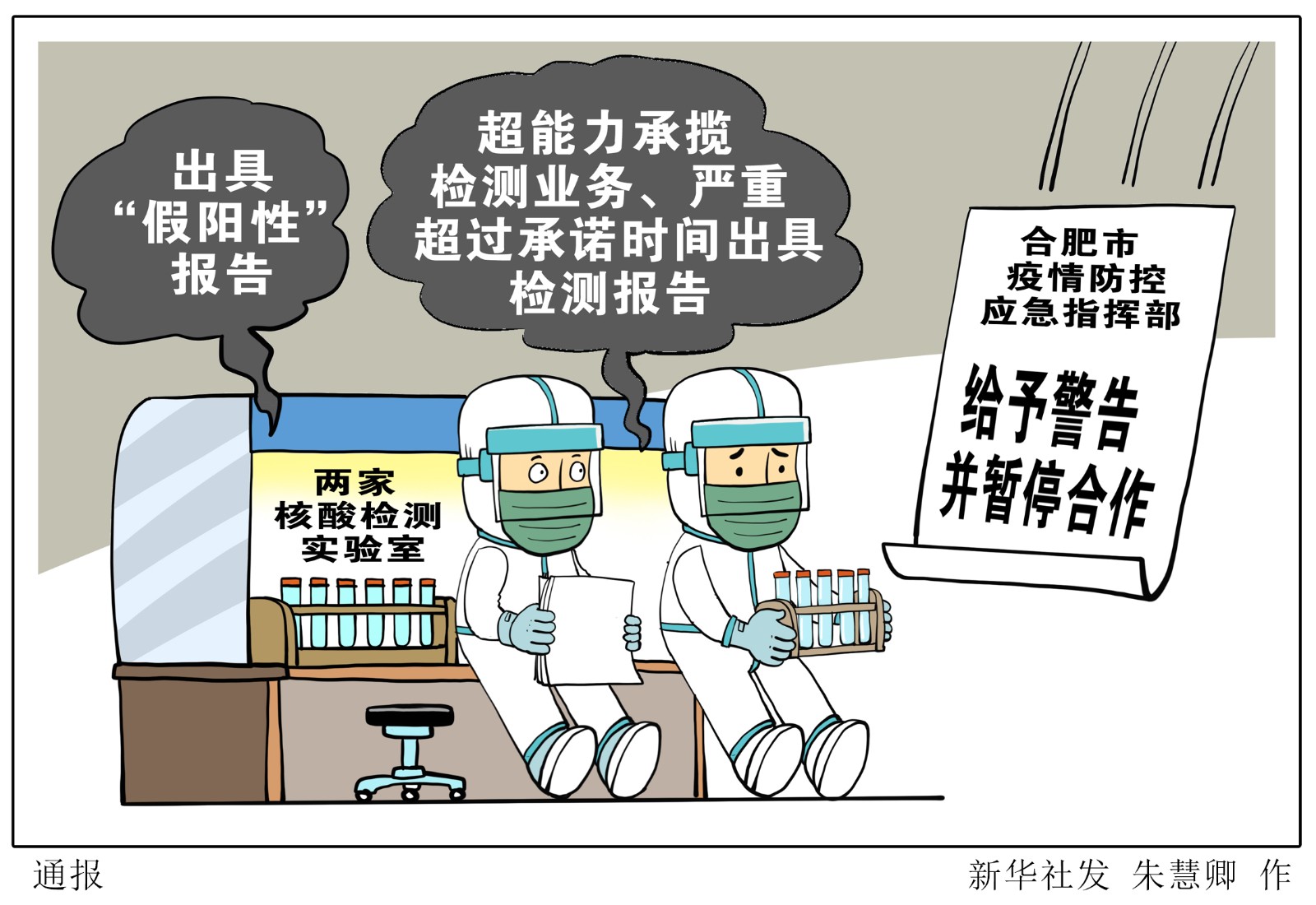 據(jù)通報,4月22日,合肥和合醫(yī)學(xué)檢驗實驗室、合肥諾為爾醫(yī)學(xué)檢驗實驗室,在合肥市蜀山區(qū)區(qū)域核酸檢測中,超能力承攬檢測業(yè)務(wù)、嚴(yán)重超過承諾時間出具檢測報告,影響合肥市對疫情形勢及時研判,更為嚴(yán)重的是,此前已多次發(fā)生類似情況,有的還幾次出具“假陽性”報告,嚴(yán)重干擾了合肥疫情防控大局。