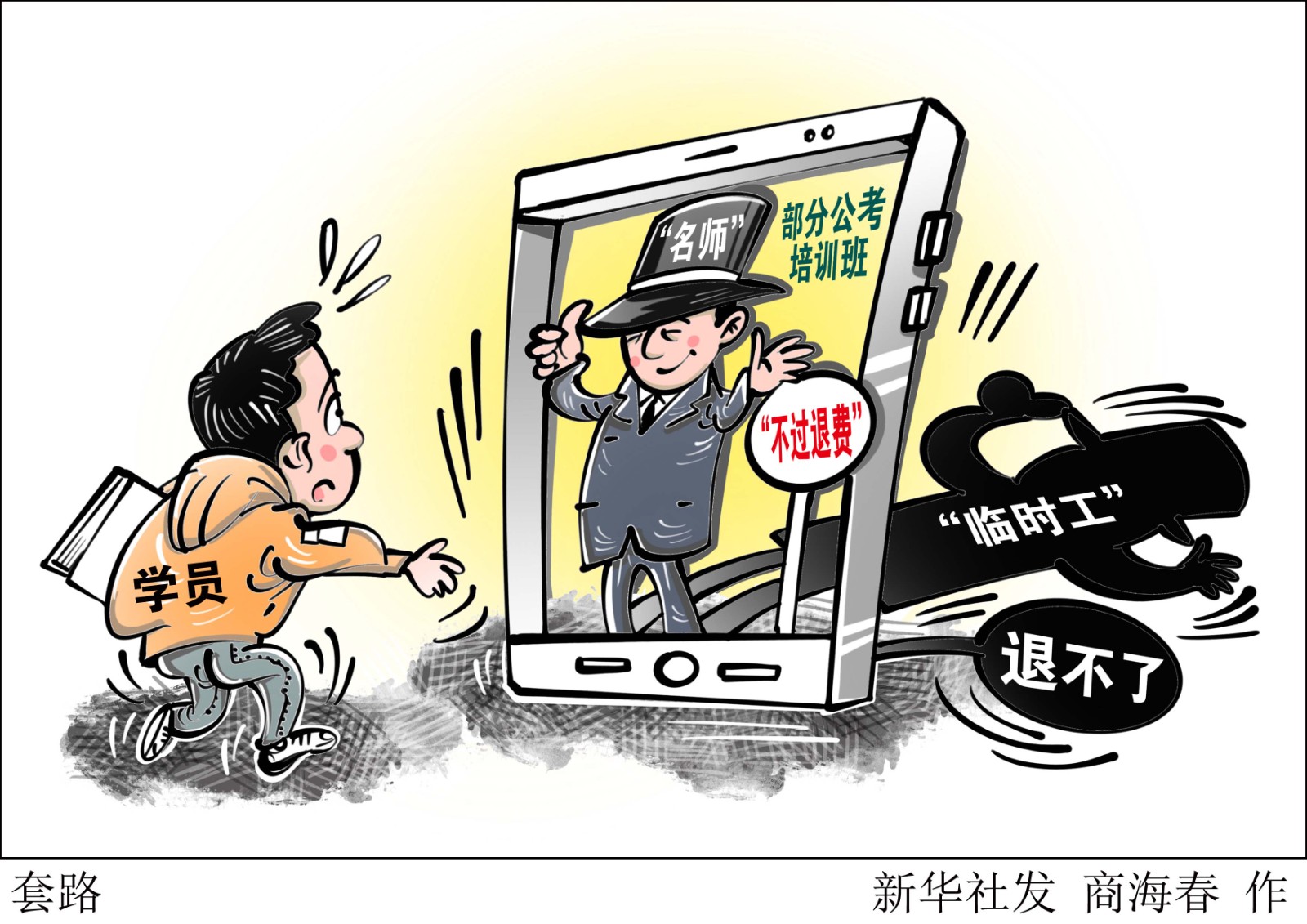 眼下,國家、地方公務員及選調生考試筆試大都已經結束,一些地方面試因疫情推遲。為應對公考筆試、面試,不少大學畢業(yè)生參加各種培訓班?!靶氯A視點”記者調查發(fā)現(xiàn),有些培訓機構所謂的“名師”,竟是招聘的“臨時工”;所謂“不過退費”,有的難以實現(xiàn)。
