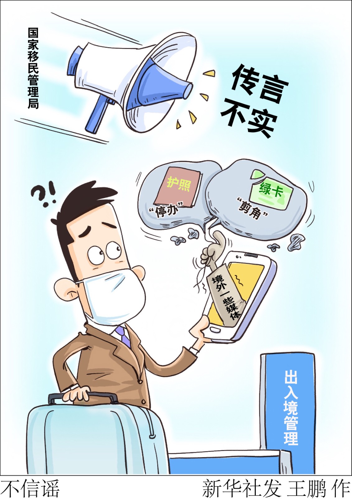近期,境外一些媒體出現(xiàn)我國“停辦護(hù)照”“對(duì)綠卡剪角禁止出境”的假消息。國家移民管理局新聞發(fā)言人5月13日對(duì)記者表示,這些假消息歪曲抹黑我出入境管理政策,意圖干擾常態(tài)化疫情防控條件下依法、精準(zhǔn)、有效的出入境管理措施,希望廣大出入境人員不信謠。