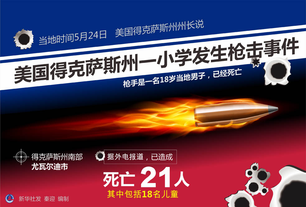 美國得克薩斯州州長阿伯特5月24日說,得克薩斯州南部尤瓦爾迪市一所小學當天發(fā)生槍擊事件。