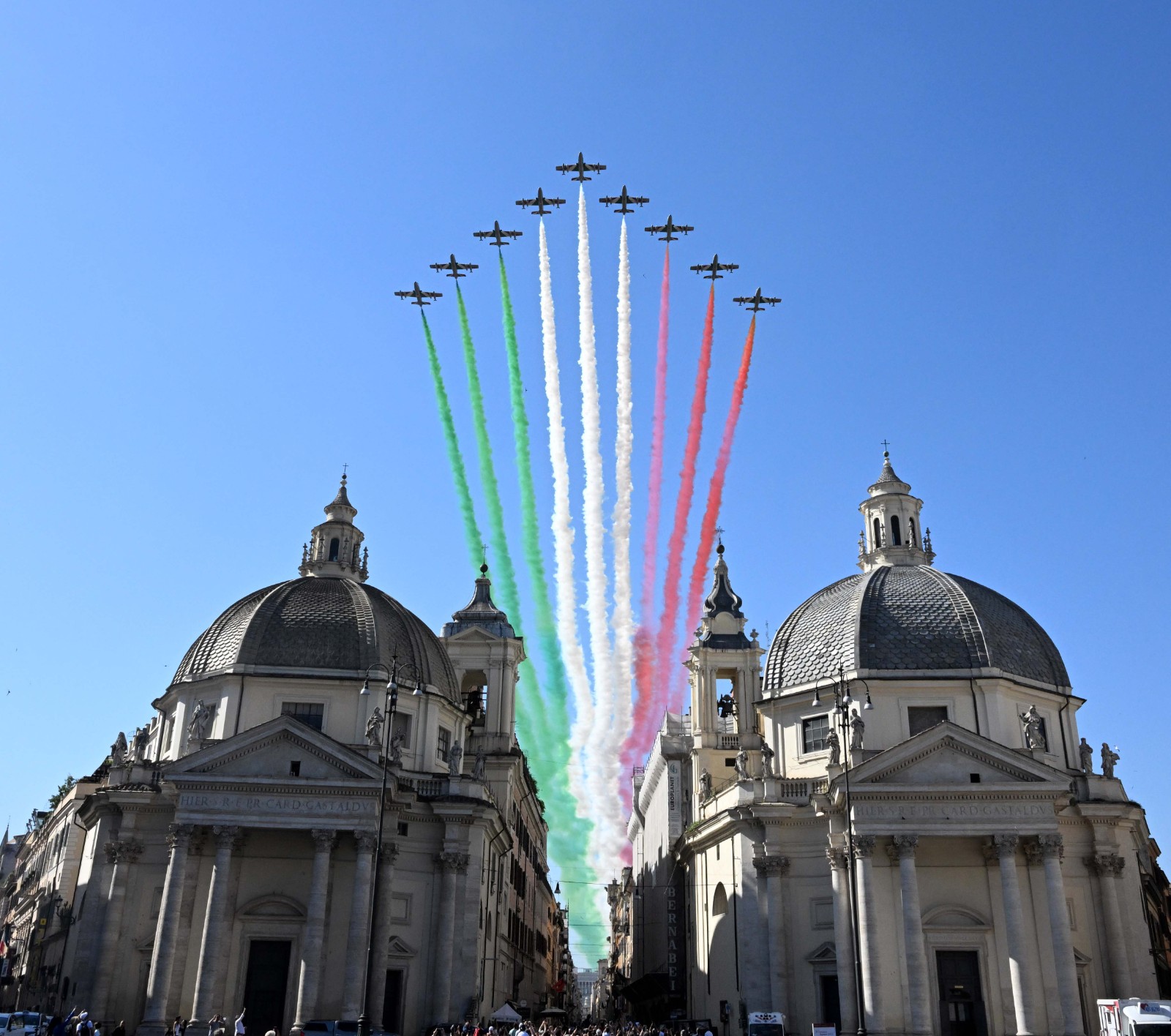 6月2日,意大利“三色箭”特技飛行表演隊(duì)在羅馬參加共和國(guó)日慶祝儀式。