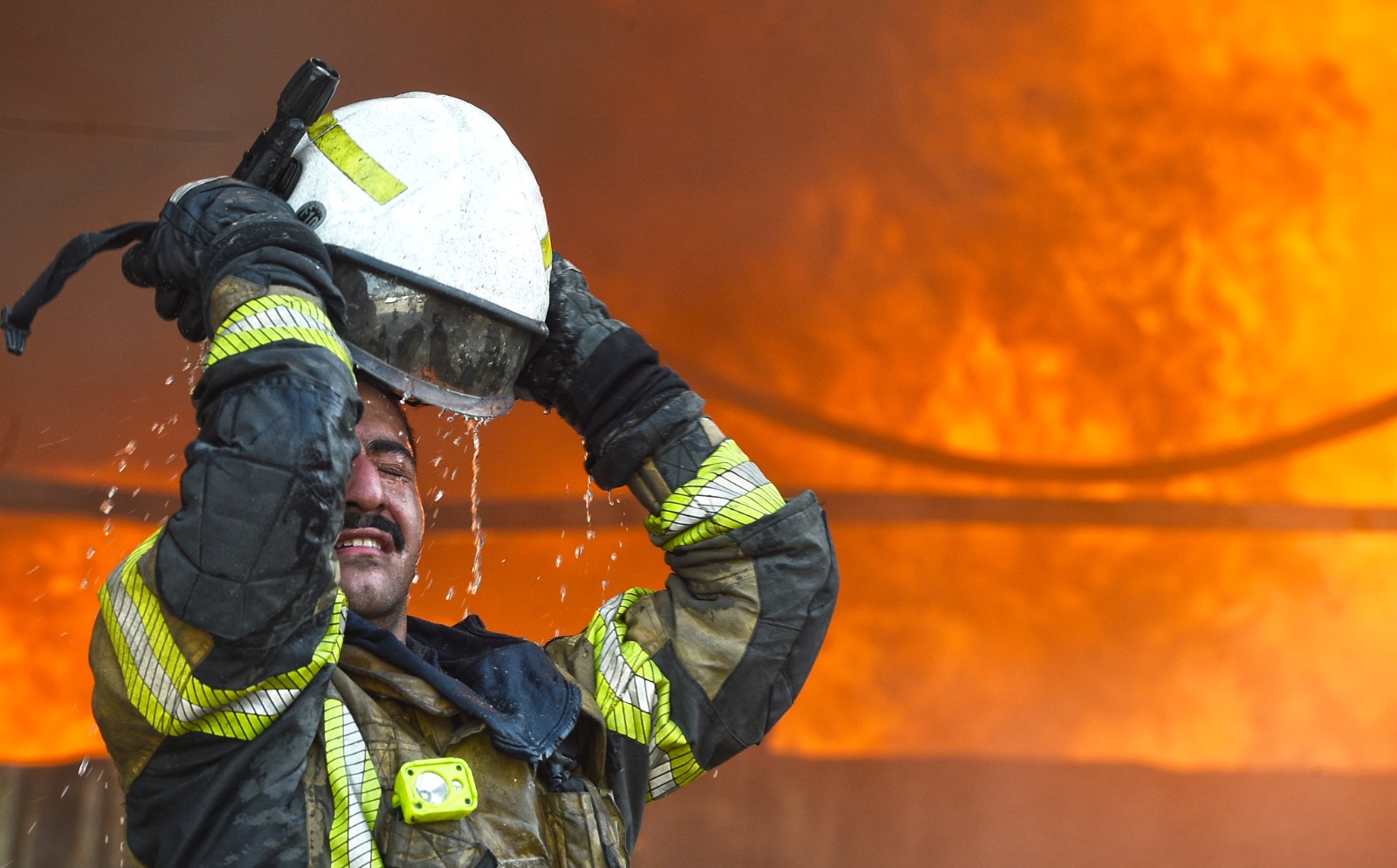 5月30日,消防員在科威特首都省一處發(fā)生火災(zāi)的帳篷市場(chǎng)工作。