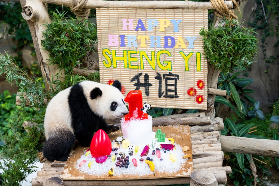 當(dāng)日,在馬來西亞出生的大熊貓寶寶“升誼”在馬來西亞國(guó)家動(dòng)物園慶祝一歲生日?!吧x”是中國(guó)旅馬大熊貓“興興”和“靚靚”生下的第三只寶寶,出生于2021年5月31日中馬建交47周年紀(jì)念日當(dāng)天。
