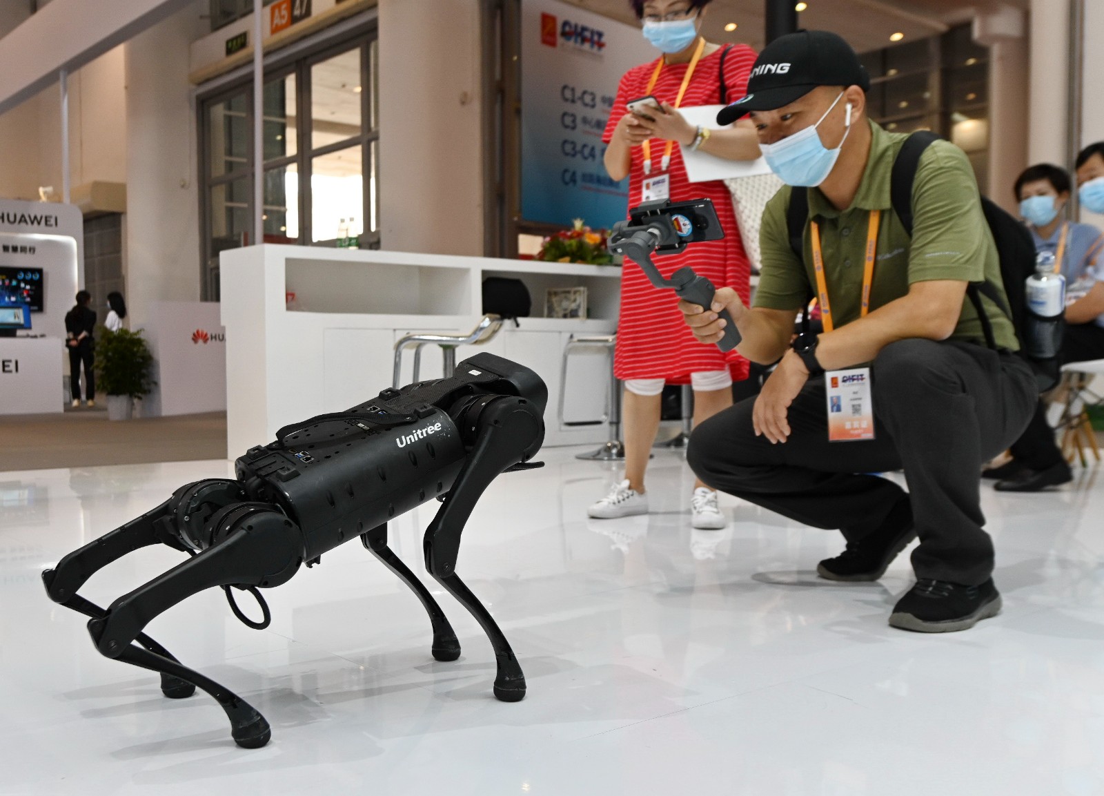 2021年9月8日,參觀者在2021金磚國家新工業(yè)革命展上拍攝展出的智能機器狗。