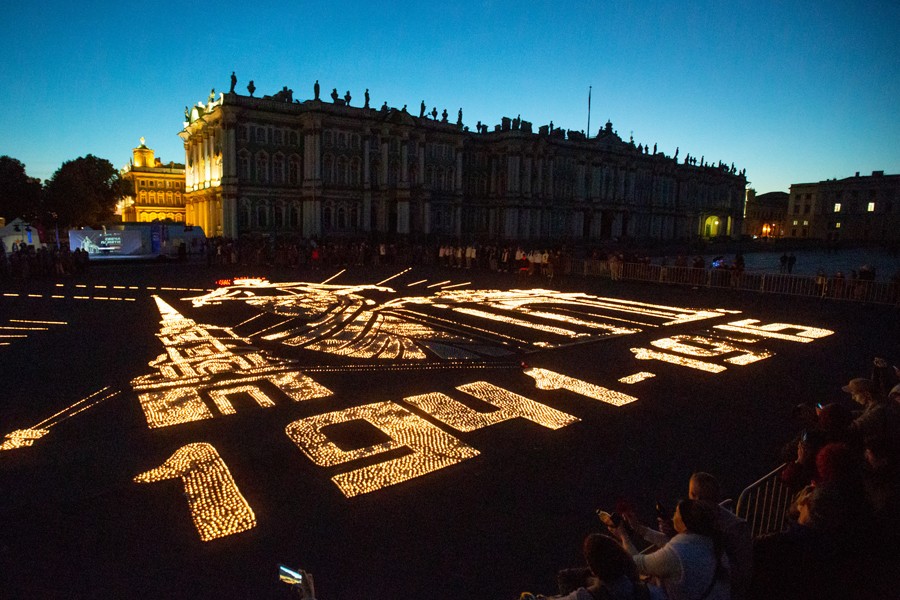 6月22日凌晨,人們?cè)诙砹_斯圣彼得堡冬宮廣場(chǎng)點(diǎn)燃蠟燭,紀(jì)念衛(wèi)國(guó)戰(zhàn)爭(zhēng)爆發(fā)81周年。