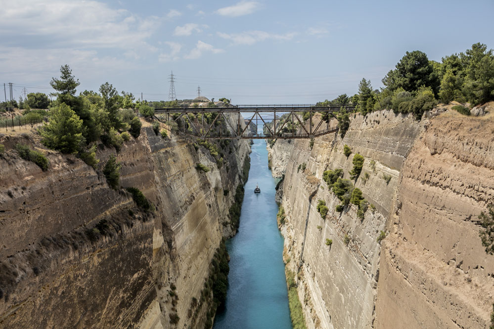 7月11日,船只在希臘科林斯運河上航行。
