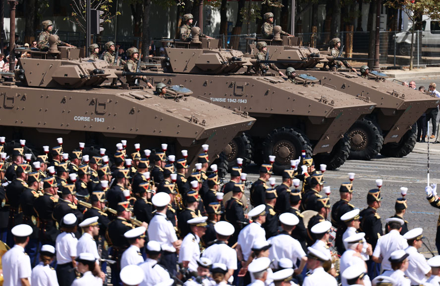 這是7月14日在法國巴黎協(xié)和廣場拍攝的國慶閱兵式現(xiàn)場。