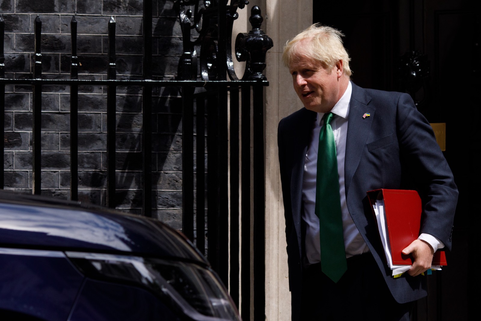 7月13日,在英國倫敦,鮑里斯·約翰遜離開唐寧街10號首相府,準備前往議會進行首相問答。