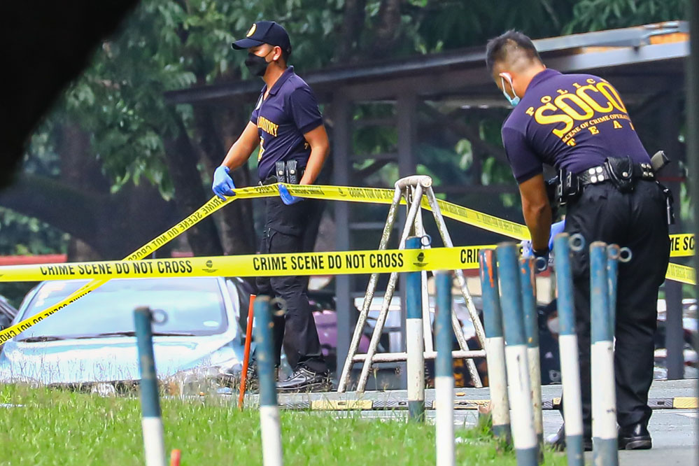 7月24日,菲律賓警察在馬尼拉大區(qū)奎松市的雅典耀大學(xué)槍擊事件現(xiàn)場(chǎng)工作。