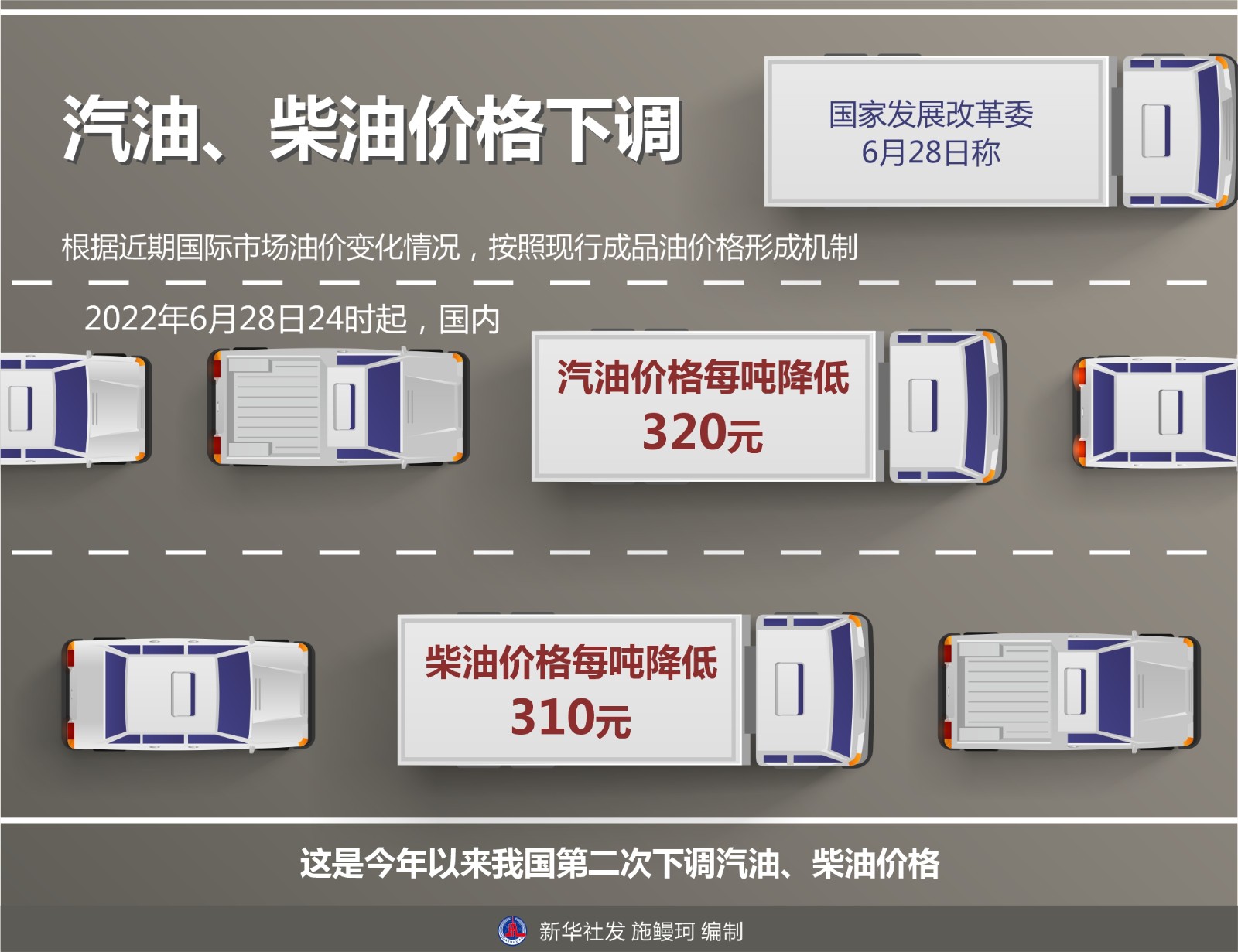 國家發(fā)展改革委6月28日稱,根據(jù)近期國際市場油價變化情況,按照現(xiàn)行成品油價格形成機(jī)制,自2022年6月28日24時起,國內(nèi)汽油、柴油價格每噸分別降低320元和310元。