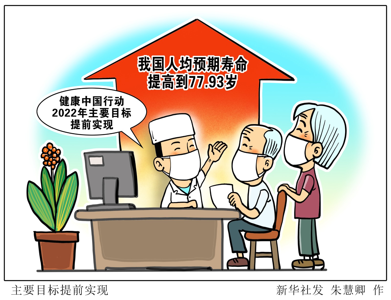 目前,我國(guó)人均預(yù)期壽命提高到77.93歲,主要健康指標(biāo)居于中高收入國(guó)家前列,健康中國(guó)行動(dòng)2022年主要目標(biāo)提前實(shí)現(xiàn),重大慢性病過(guò)早死亡率低于全球平均水平,健康中國(guó)行動(dòng)實(shí)施取得明顯階段性成效。