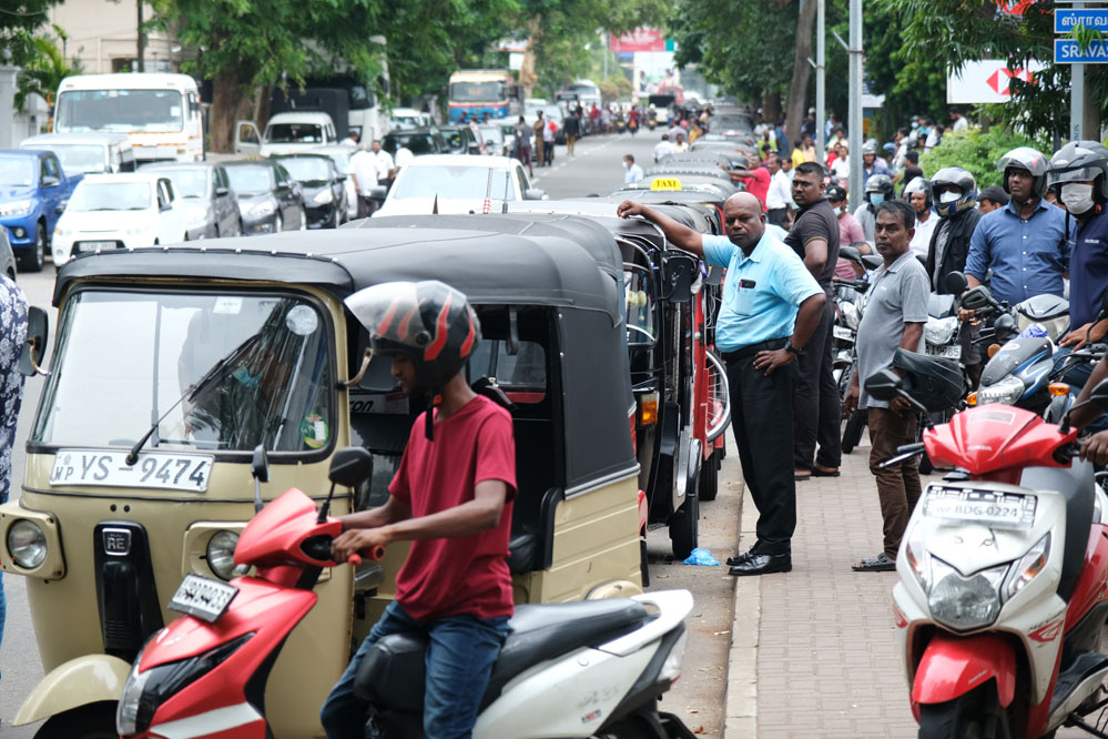 7月21日,在斯里蘭卡首都科倫坡,人們在排隊加油。