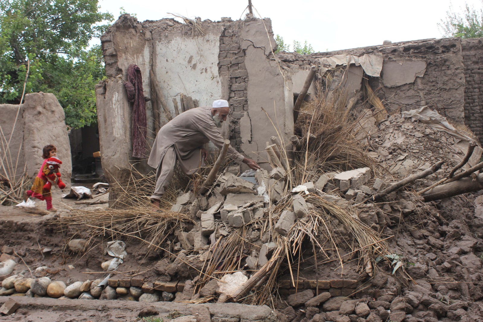 這是7月24日在阿富汗楠格哈爾省受災(zāi)地區(qū)拍攝的受損房屋。