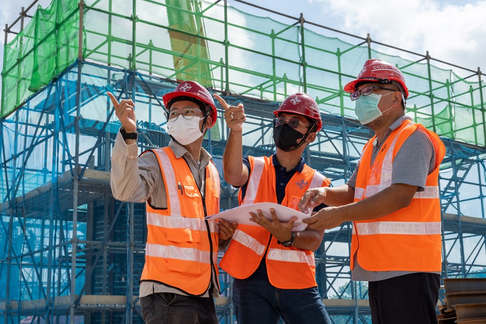 7月25日,西亞赫明(中)在位于馬來(lái)西亞彭亨州的馬東鐵項(xiàng)目六分部施工現(xiàn)場(chǎng)工作。