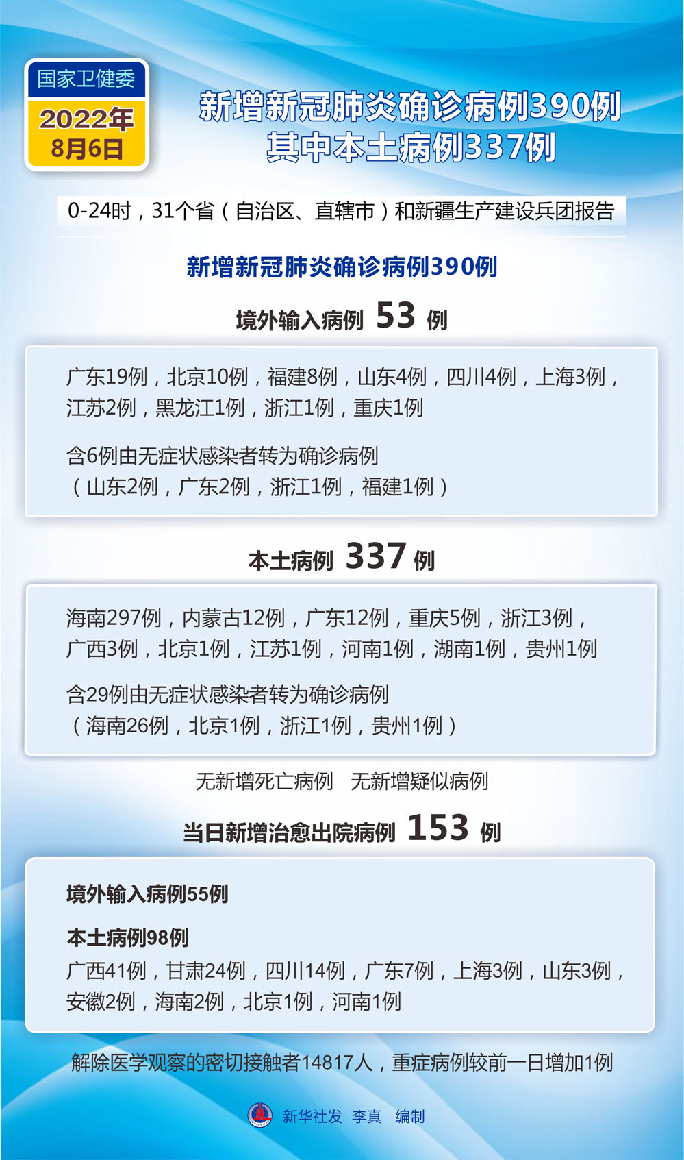 (圖表)國家衛(wèi)健委:8月6日新增新冠肺炎確診病例390例 其中本土病例337例