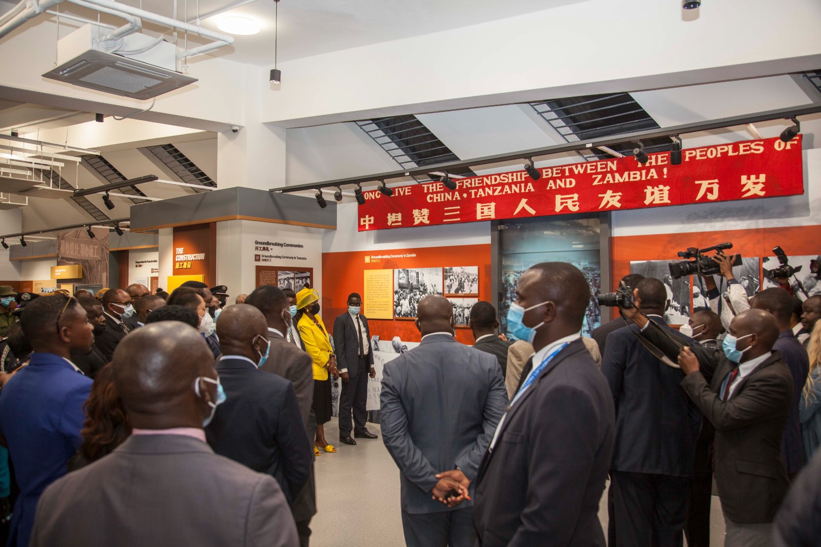 8月10日,在贊比亞盧薩卡省瓊圭地區(qū),來(lái)賓參觀(guān)坦贊鐵路紀(jì)念園內(nèi)的紀(jì)念館。