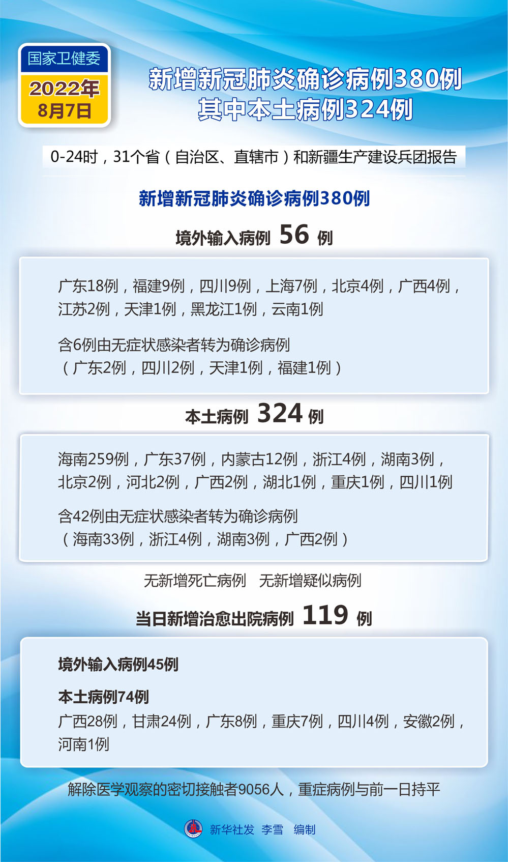 (圖表)國家衛(wèi)健委:8月7日新增新冠肺炎確診病例380例 其中本土病例324例