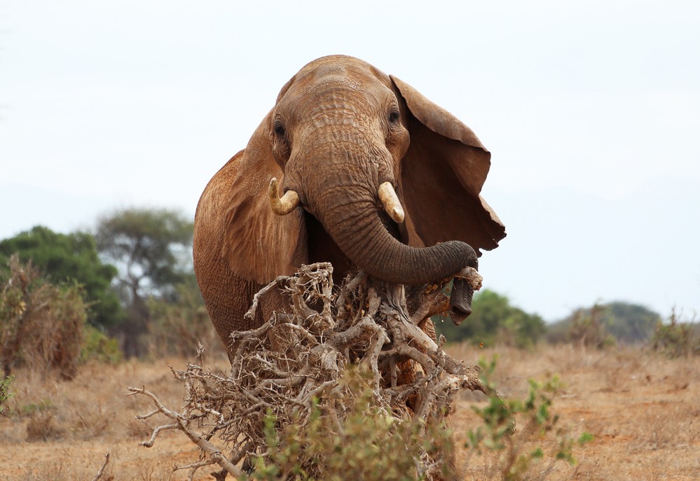 這是7月28日在肯尼亞察沃國家公園拍攝的大象。