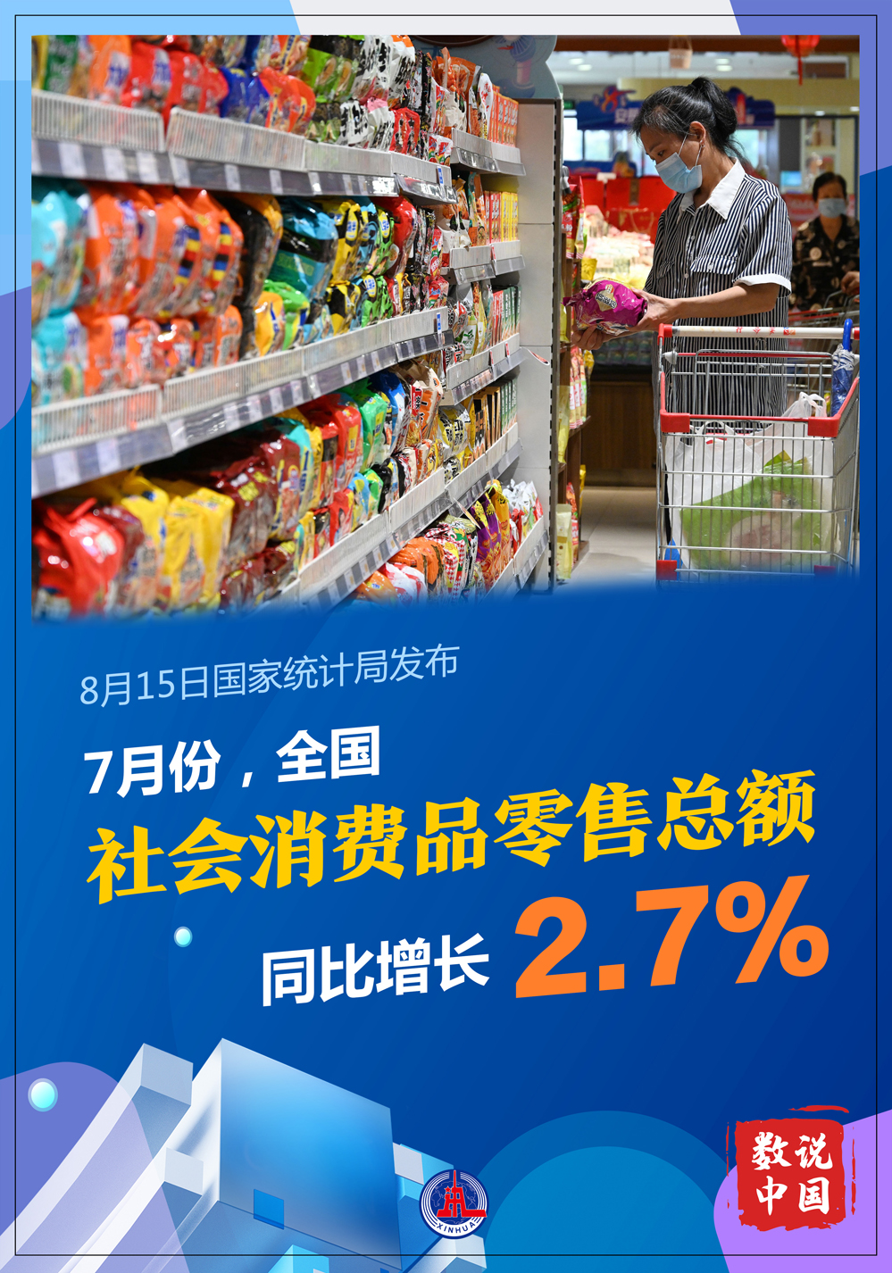 國(guó)家統(tǒng)計(jì)局8月15日發(fā)布數(shù)據(jù)顯示,7月份,社會(huì)消費(fèi)品零售總額同比增長(zhǎng)2.7%,比上月回落0.4個(gè)百分點(diǎn);環(huán)比增長(zhǎng)0.27%。