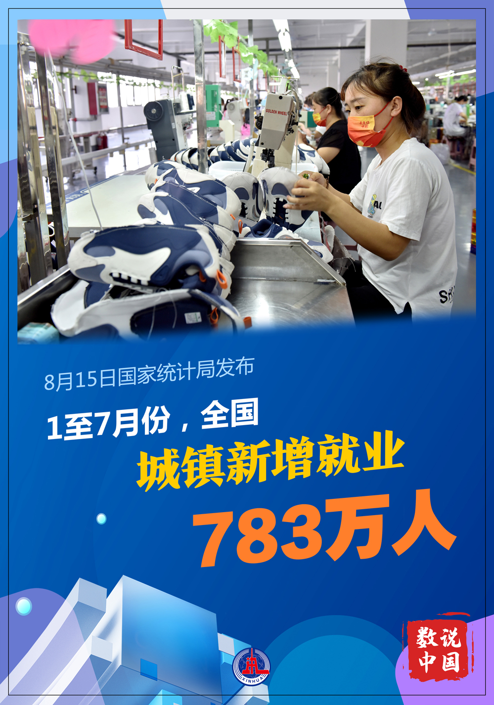 國家統(tǒng)計(jì)局8月15日發(fā)布數(shù)據(jù)顯示,1至7月份,全國城鎮(zhèn)新增就業(yè)783萬人。