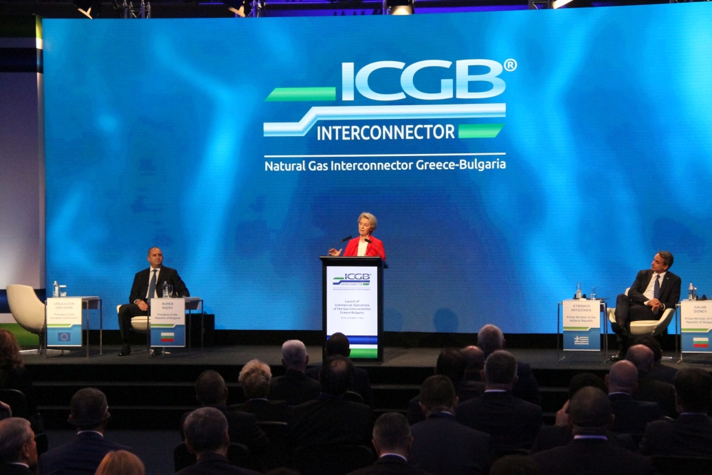 10月1日,歐盟委員會(huì)主席馮德萊恩在出席希臘-保加利亞天然氣管道商業(yè)運(yùn)營(yíng)啟動(dòng)儀式上講話。