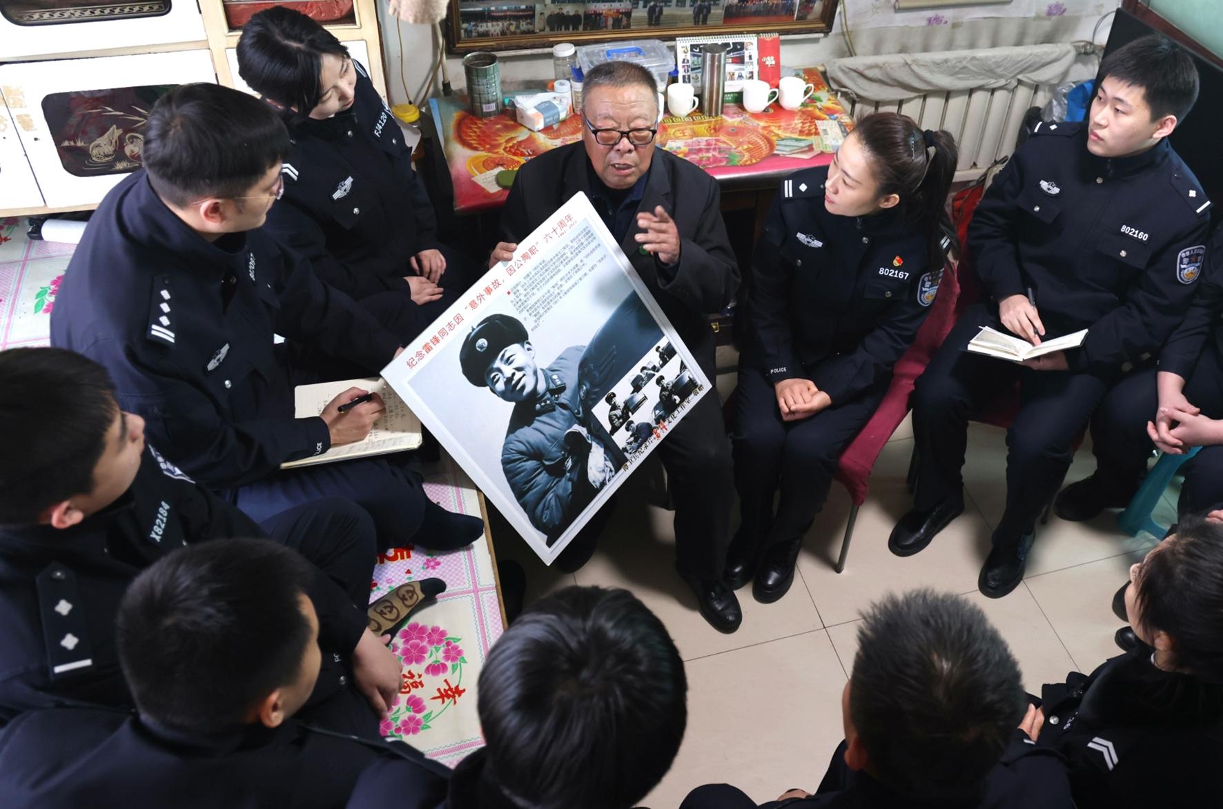 “學(xué)雷鋒要有耐心、有愛心,做點實在事……”3月2日,遼寧省遼陽市公安局弓長嶺分局組織民輔警來到雷鋒義弟、72歲的呂學(xué)廣家里,聆聽他講述和雷鋒在一起的故事。