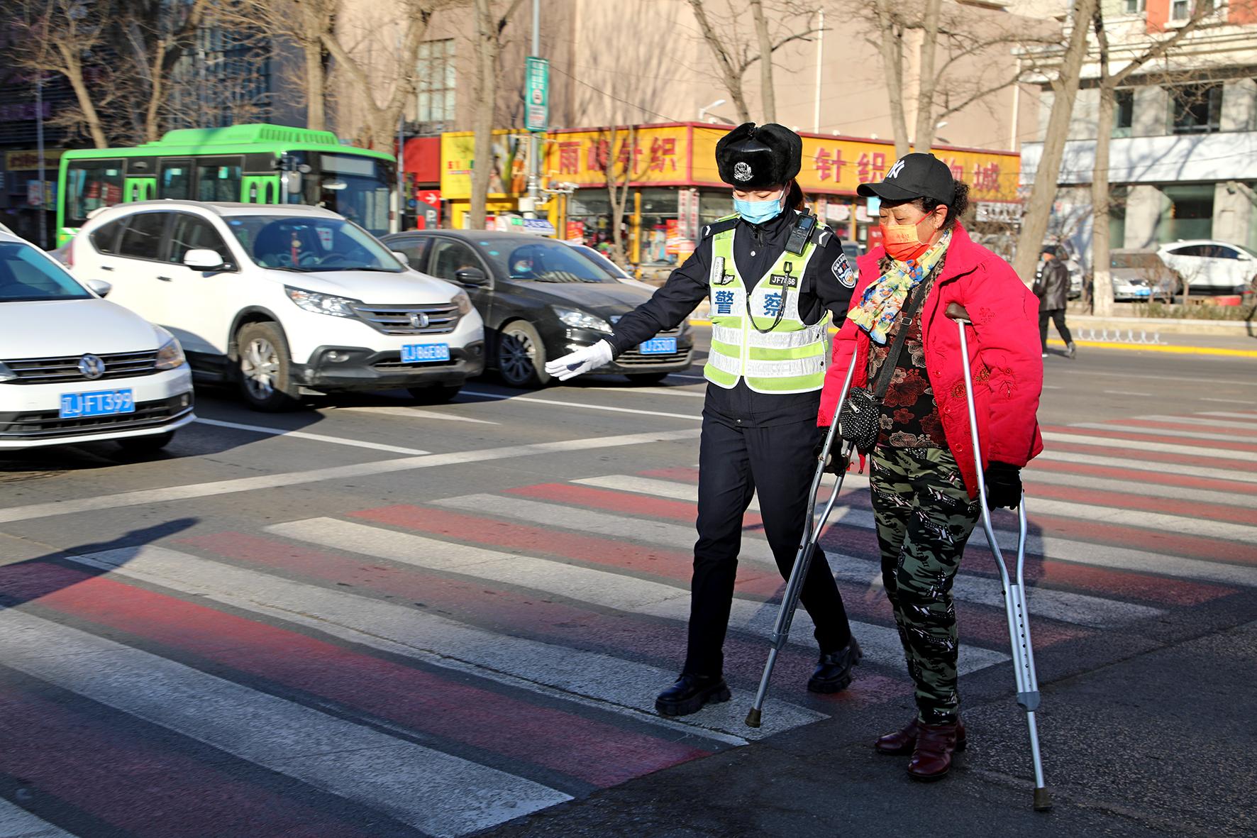 3月8日,遼寧省阜新市公安局交警支隊海州大隊的女民警、女輔警在崗位上度過“三八”節(jié)。