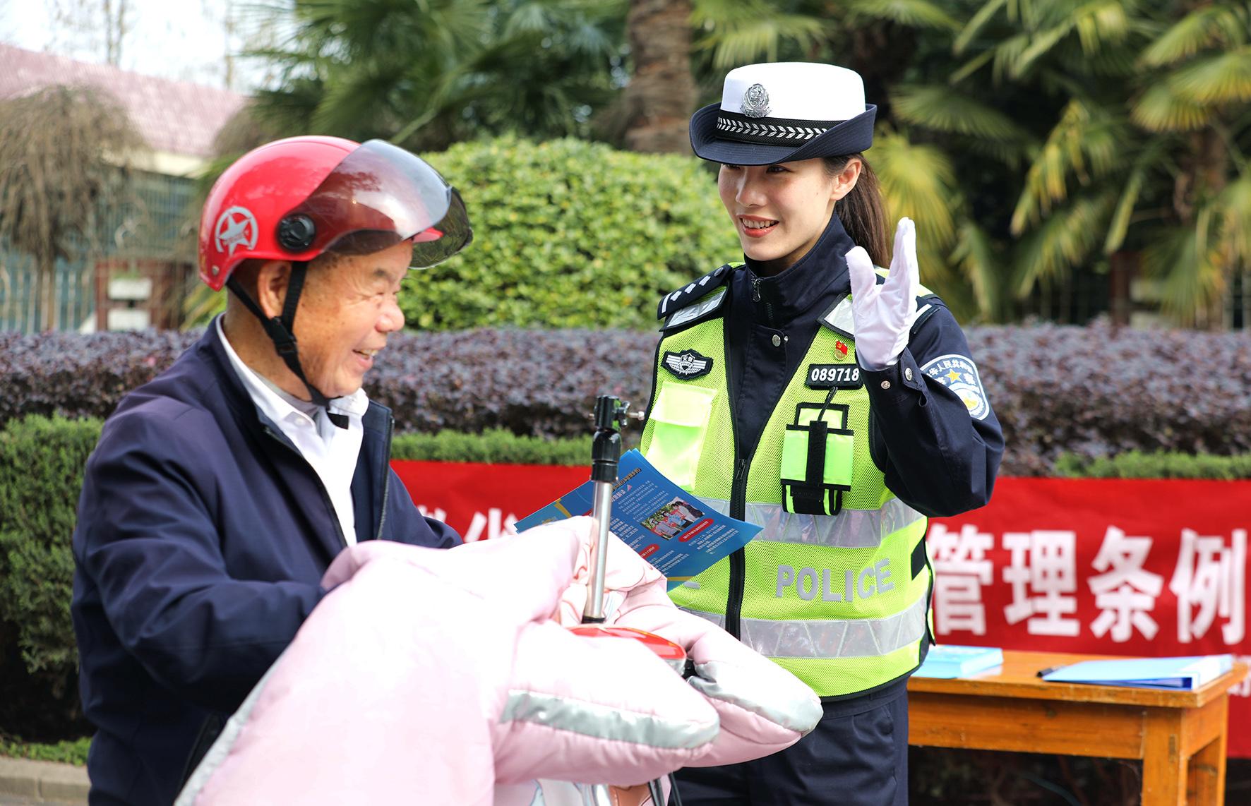 3月8日,安徽省舒城縣公安局組織女民警開展“巾幗護騎行 幸‘盔’戴上你”宣傳活動。