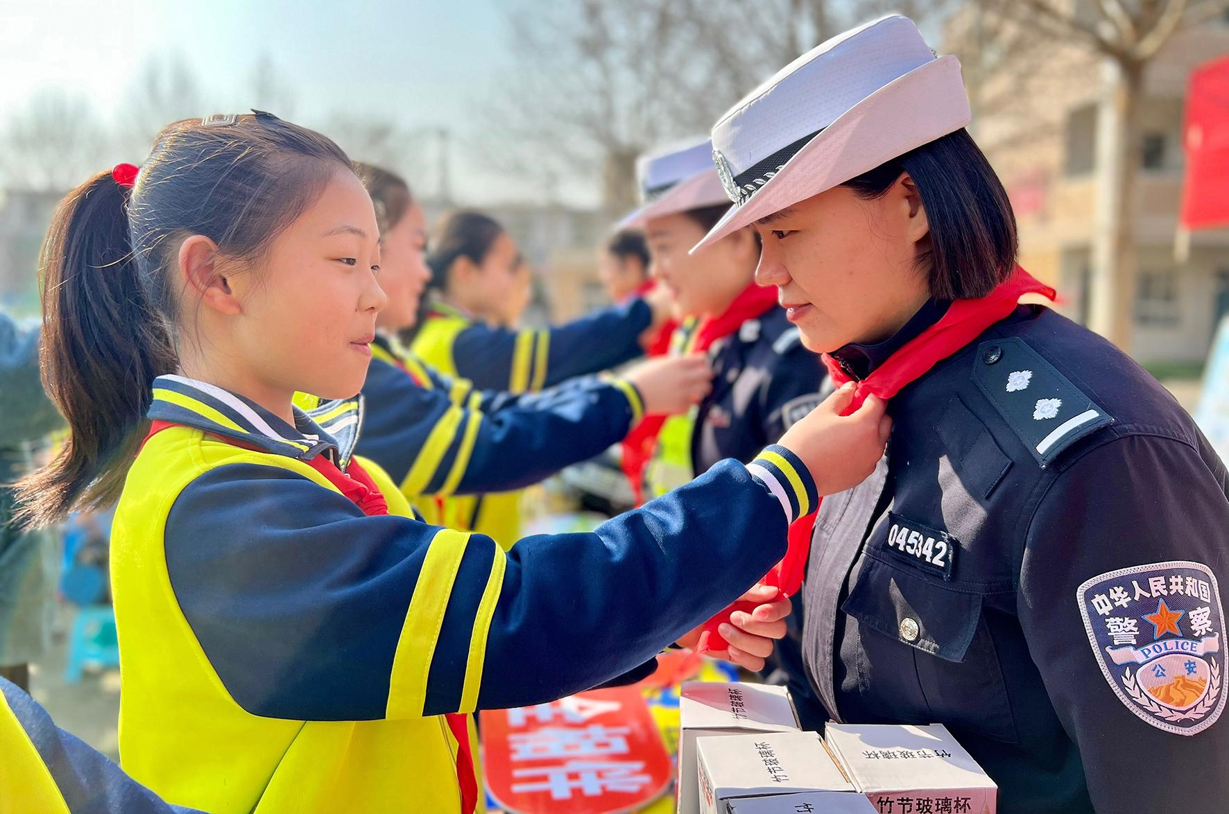 3月7日,陜西省渭南市蒲城縣公安局交通管理大隊女民警走進祥塬小學開展交通安全“春季守護行動”。