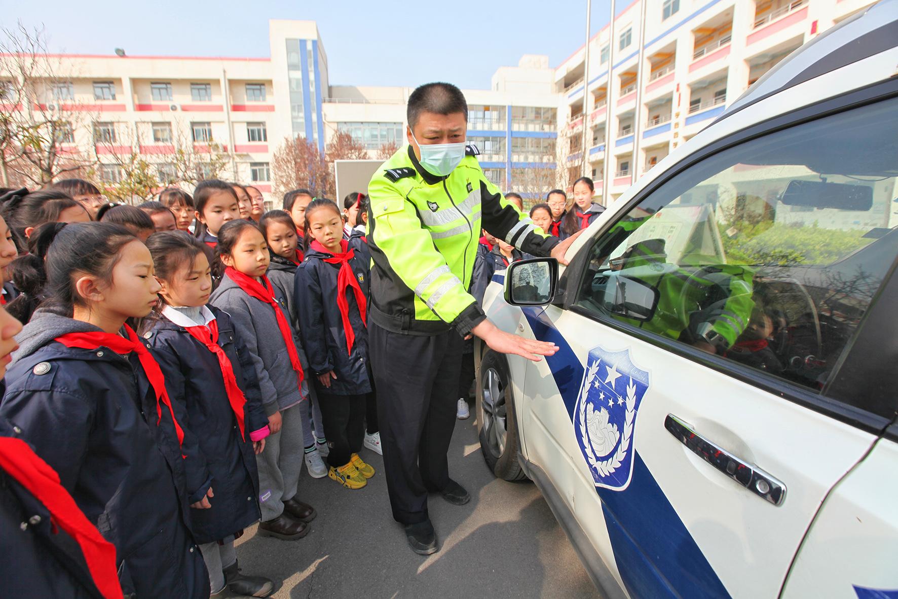 3月27日,安徽省巢湖市公安局交警大隊(duì)輔警走進(jìn)胡崗小學(xué),開展交通安全教育。