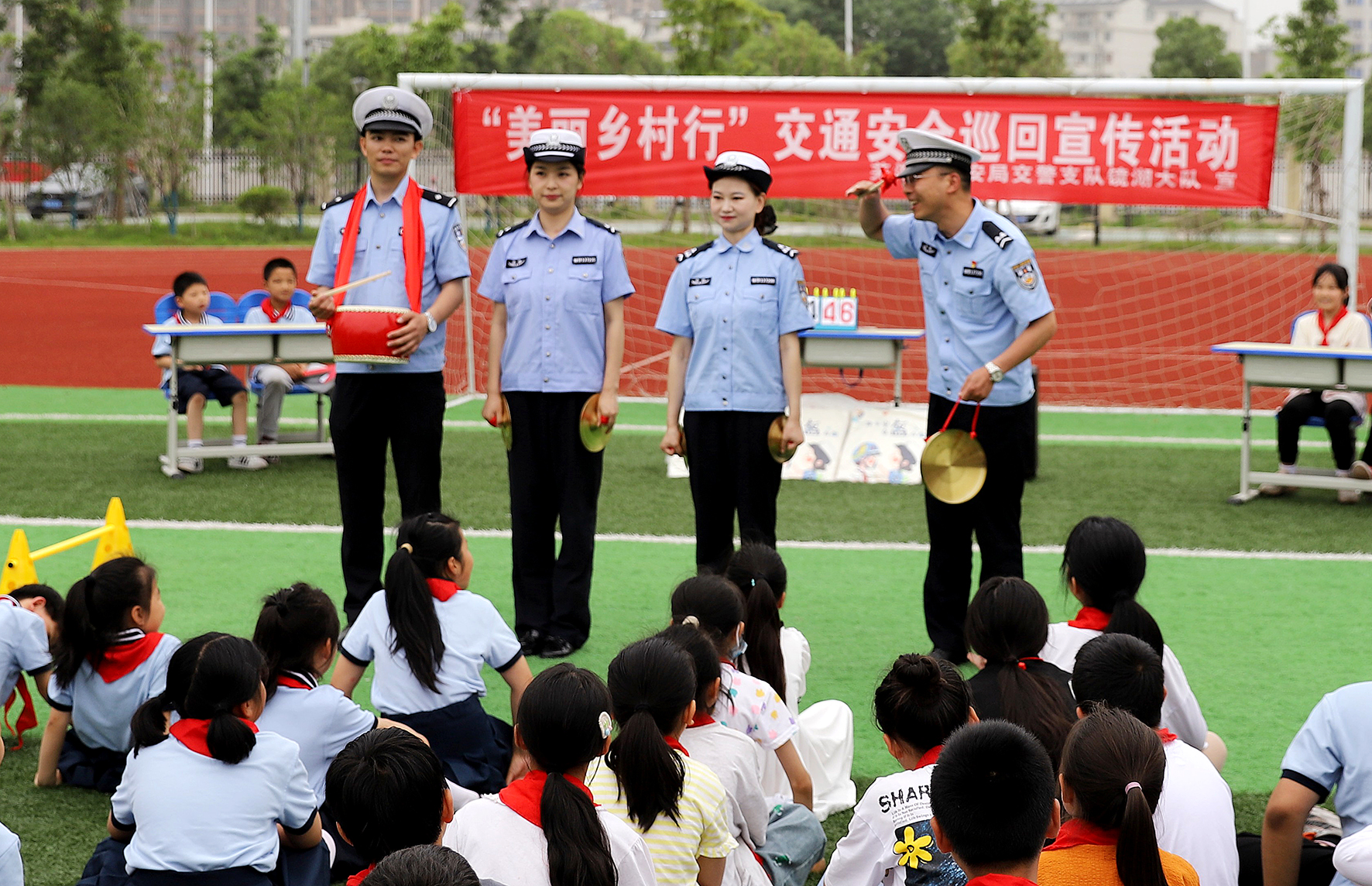 5月30日,安徽省蕪湖市公安局交警支隊(duì)民警走進(jìn)北塘小學(xué)開展“美麗鄉(xiāng)村行”交通安全知識(shí)巡回宣講活動(dòng)。民警采用說唱、搶答、游戲等多種形式,向孩子們宣傳交通安全知識(shí)。