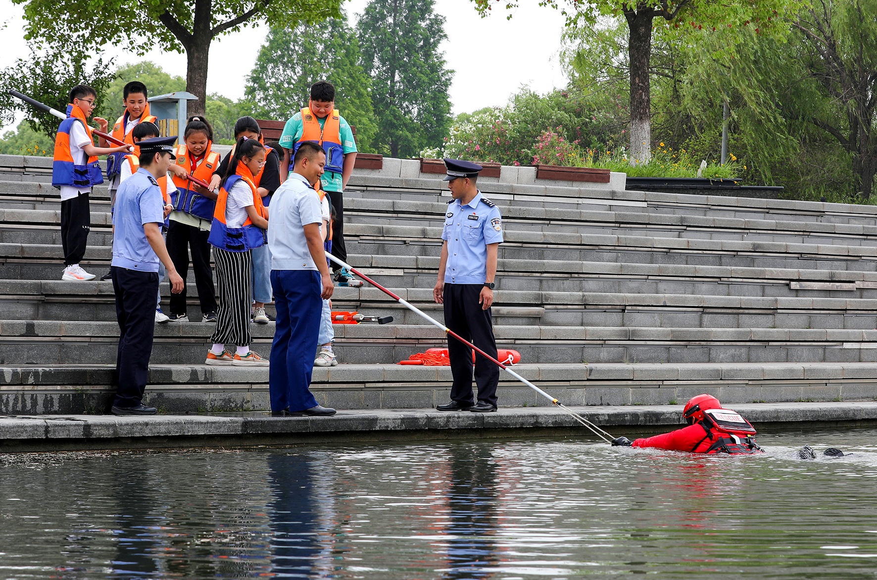 5月29日,安徽省巢湖市公安局臥牛派出所民警聯(lián)合藍(lán)天救援隊(duì)來到信泰幼兒園,為學(xué)生們宣講防溺水知識(shí)。