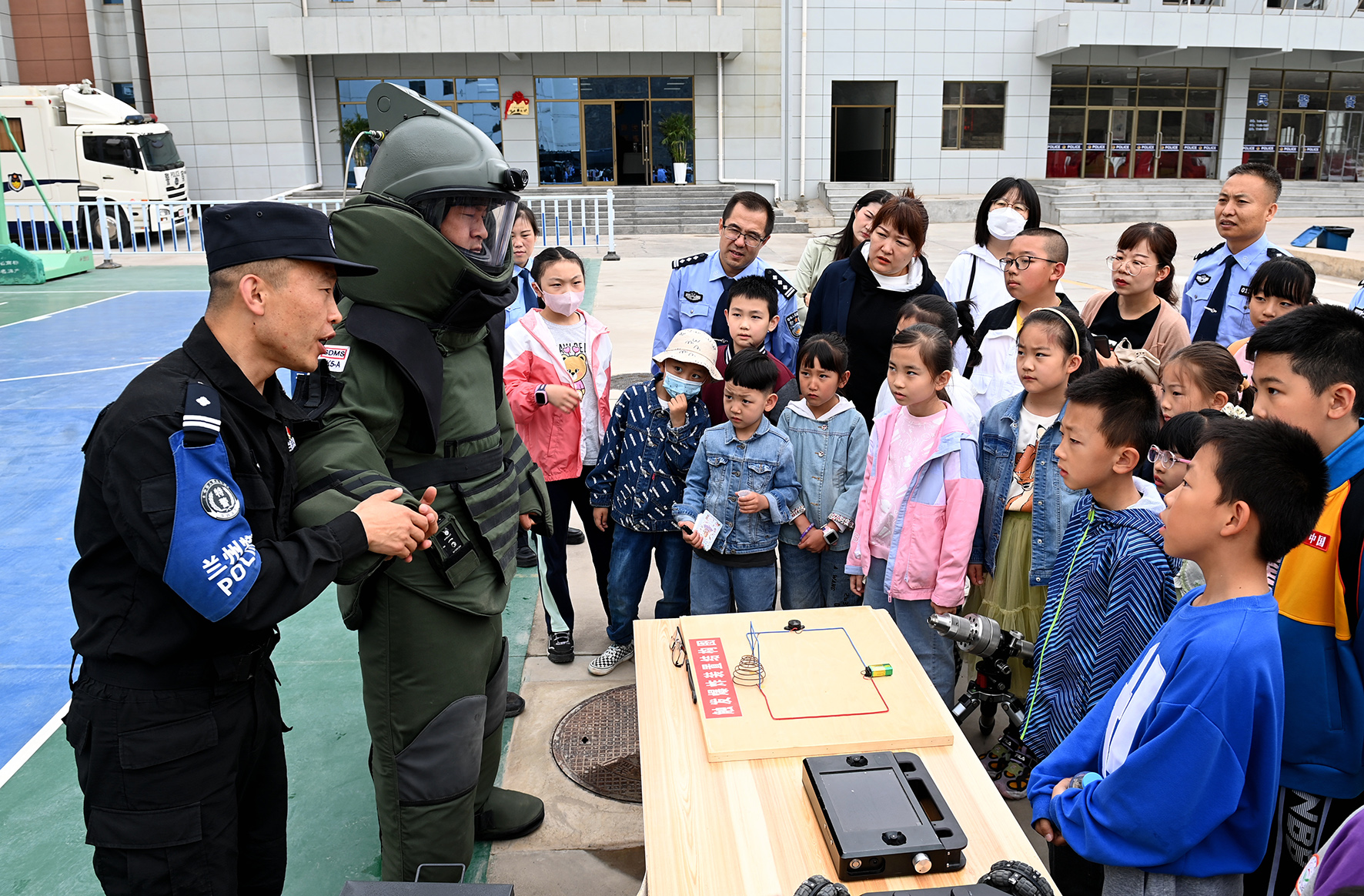5月27日,甘肅省蘭州市公安局組織開展“童心連警心·歡樂慶六一”警寶進(jìn)警營活動(dòng),邀請(qǐng)民輔警適齡子女走進(jìn)警營,近距離感受警察風(fēng)采。