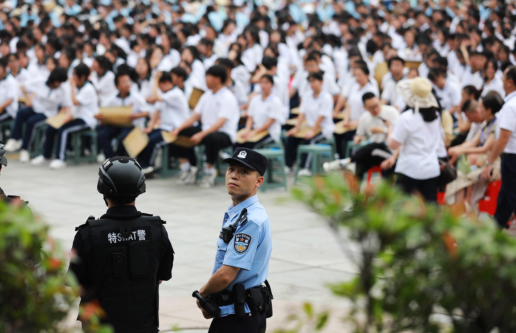 6月22日,江蘇省無錫市公安局梁溪分局巡特警隊員在清名橋歷史文化街區(qū)值守,確保現(xiàn)場安全有序。