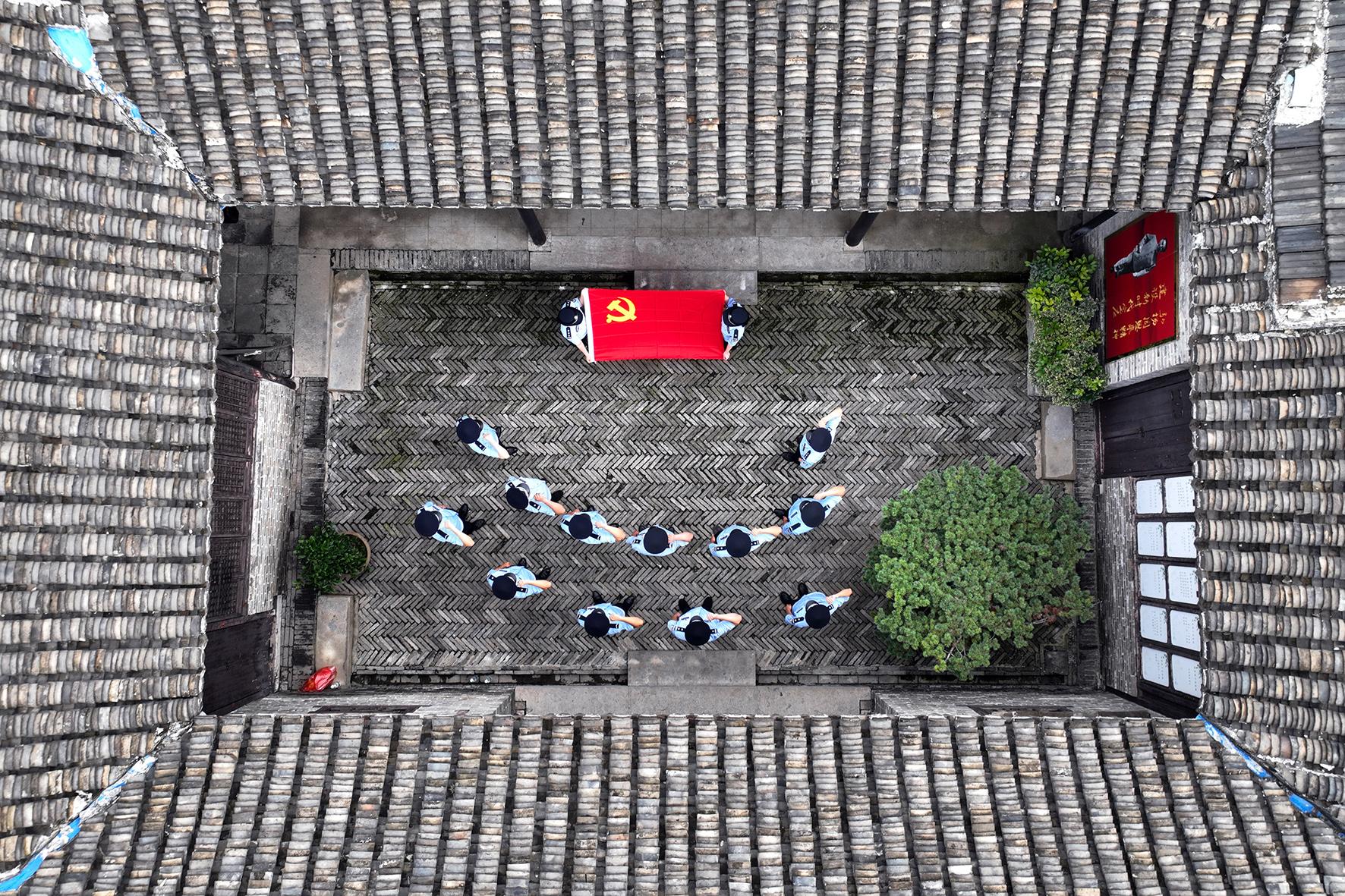 6月30日, 江蘇省揚(yáng)州市寶應(yīng)縣公安局城北派出所黨員民警在周恩來少年時(shí)期讀書處重溫入黨誓詞,激勵(lì)廣大黨員民警不忘初心、牢記使命,傳承革命精神,鍛造忠誠警魂。
