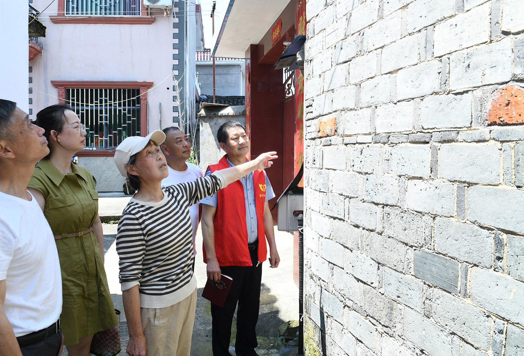 圖三:應(yīng)火根(右)與當(dāng)事人實(shí)地查看引起糾紛的老房屋地基。