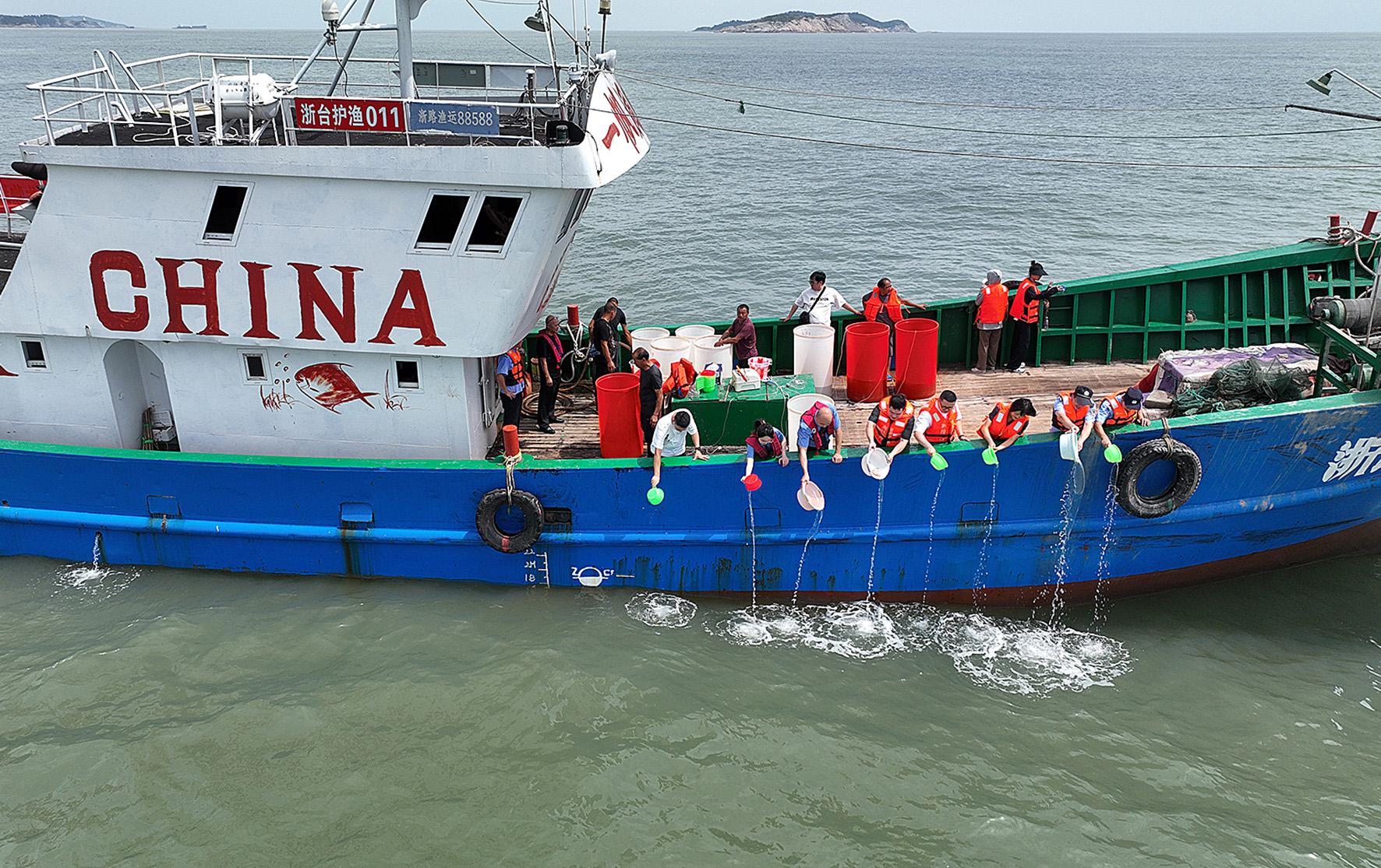 7月19日,在浙江省臺(tái)州市路橋區(qū)金清鎮(zhèn)近海海域,當(dāng)?shù)攸h員干部、政法干警、人大代表、政協(xié)委員、漁民代表等開(kāi)展海洋增殖放流活動(dòng),向大海投放蝦苗2050萬(wàn)尾。