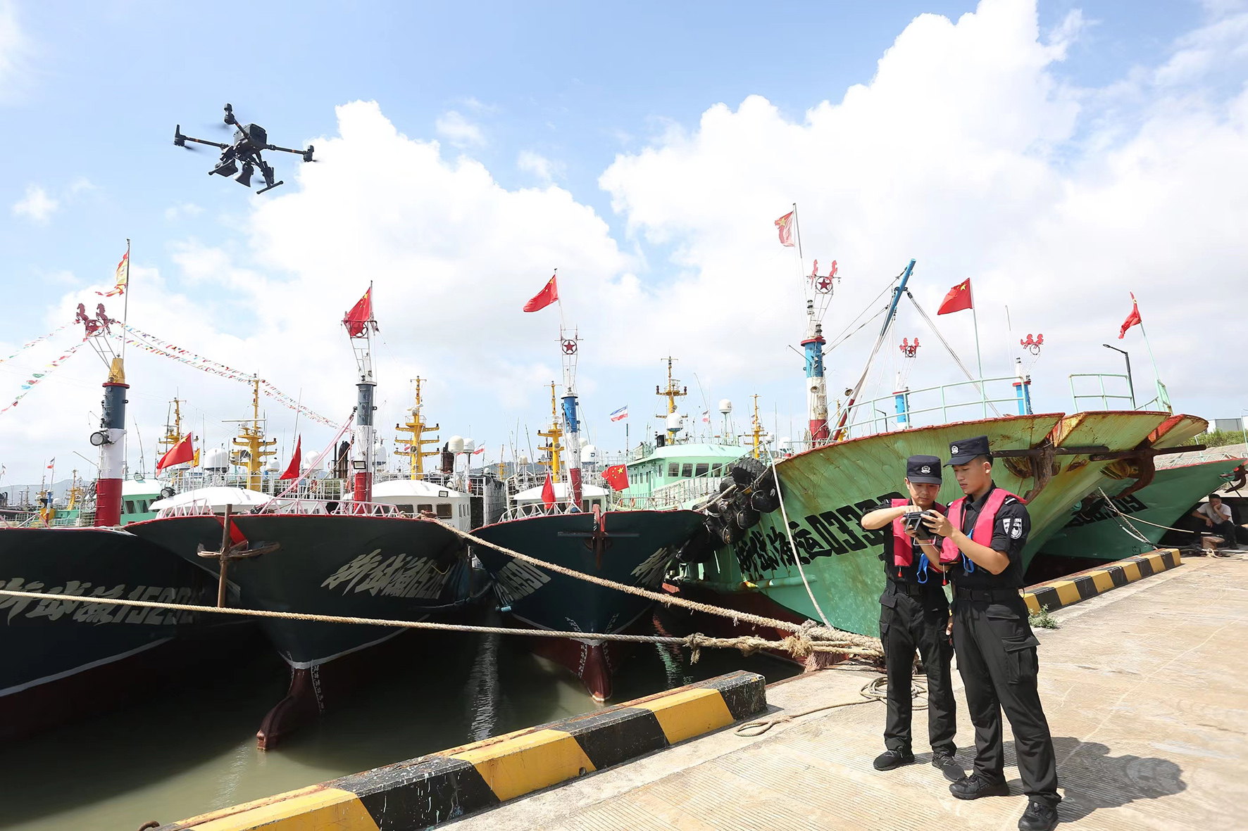 為積極應(yīng)對(duì)今年第6號(hào)臺(tái)風(fēng)“卡努”可能帶來(lái)的影響,7月31日,浙江省岱山縣公安局民警利用警用無(wú)人機(jī)對(duì)岱山縣域漁港進(jìn)行空中巡查,加強(qiáng)漁港碼頭治安管控力度,對(duì)各類(lèi)避風(fēng)船只開(kāi)展安全提示。