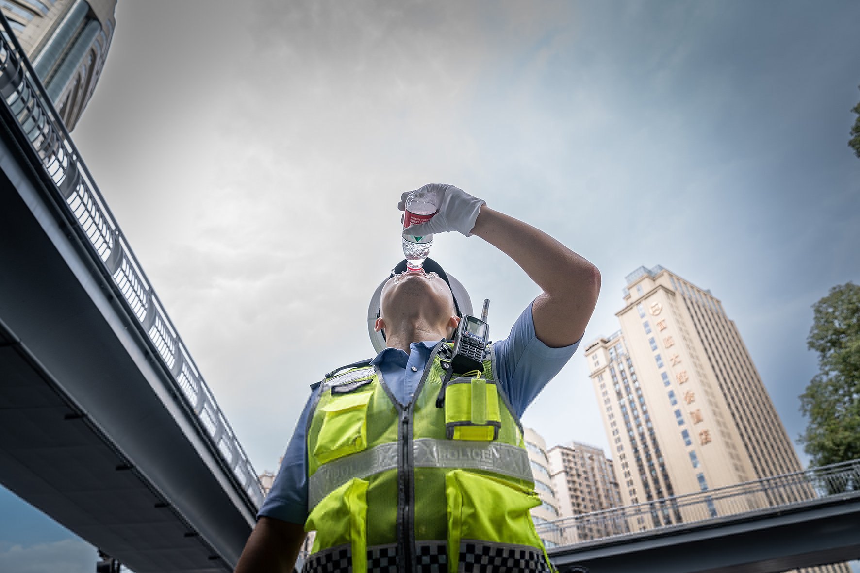 8月8日,四川省綿陽市出現(xiàn)34℃高溫天氣。綿陽市公安局交警直屬一大隊民警堅守路面,冒高溫指揮疏導(dǎo)交通,確保道路安全暢通。