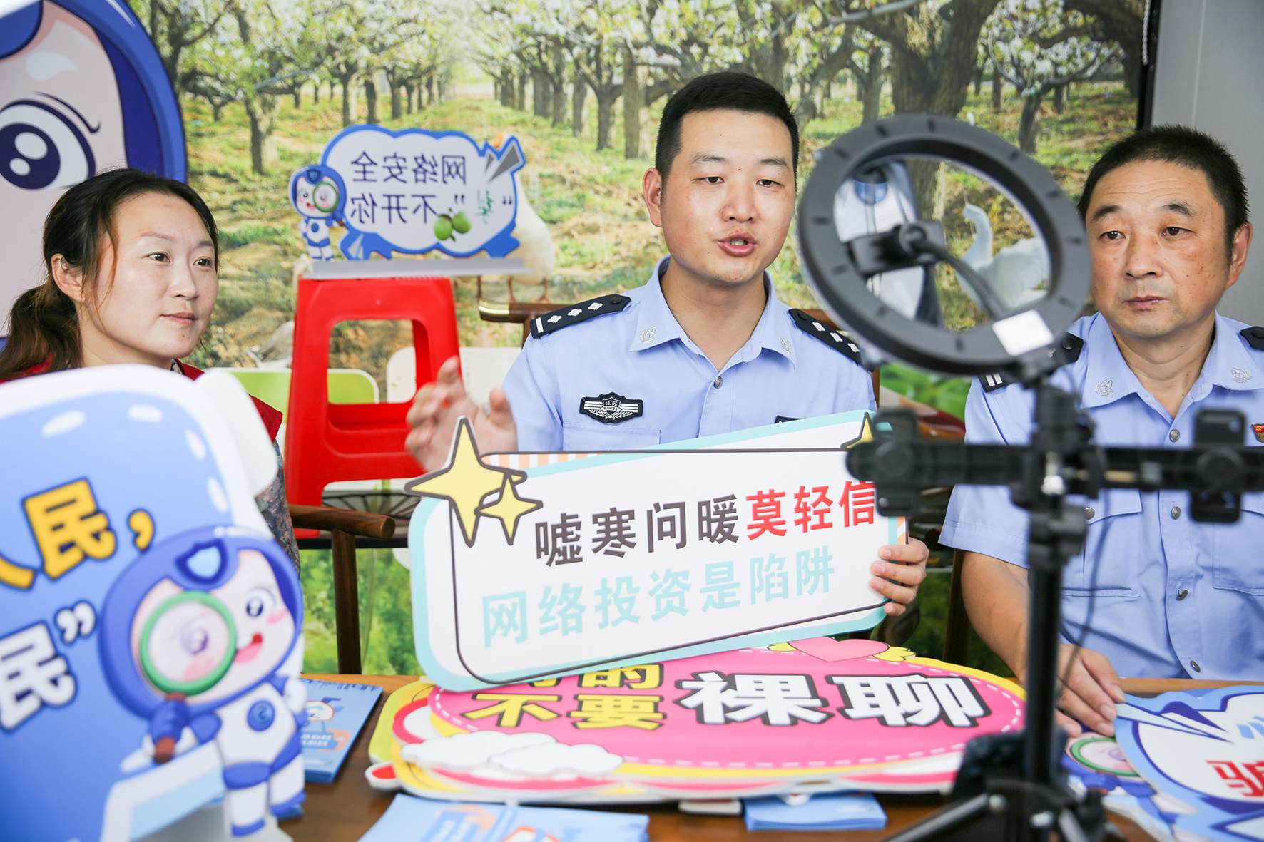 9月16日,江蘇省如皋市公安局東陳鎮(zhèn)派出所民警走進徐灣社區(qū)直播間,向群眾普及網(wǎng)絡安全和防范電信詐騙知識。